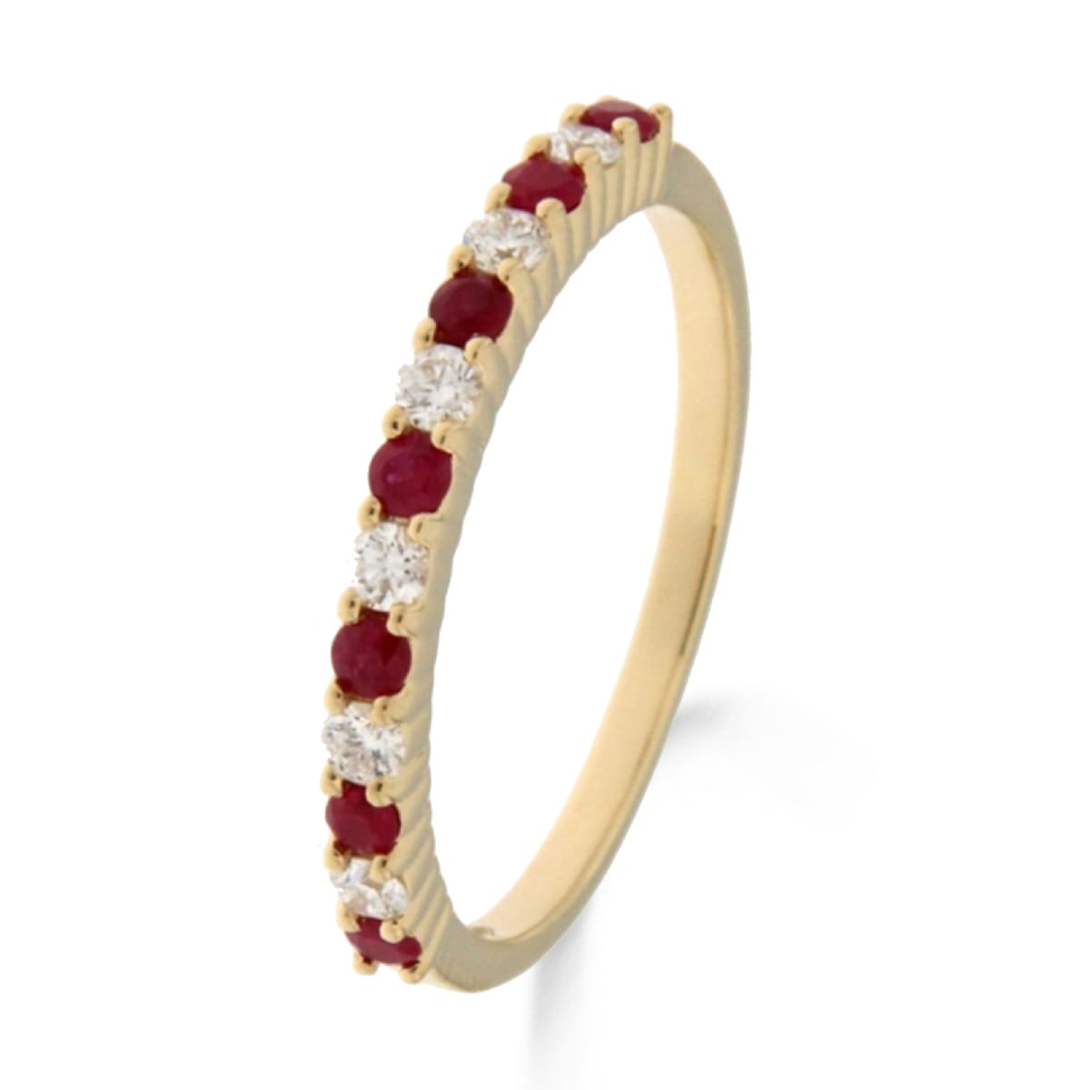 Alliance en or jaune alternant 7 rubis et 6 diamants taille brillant.