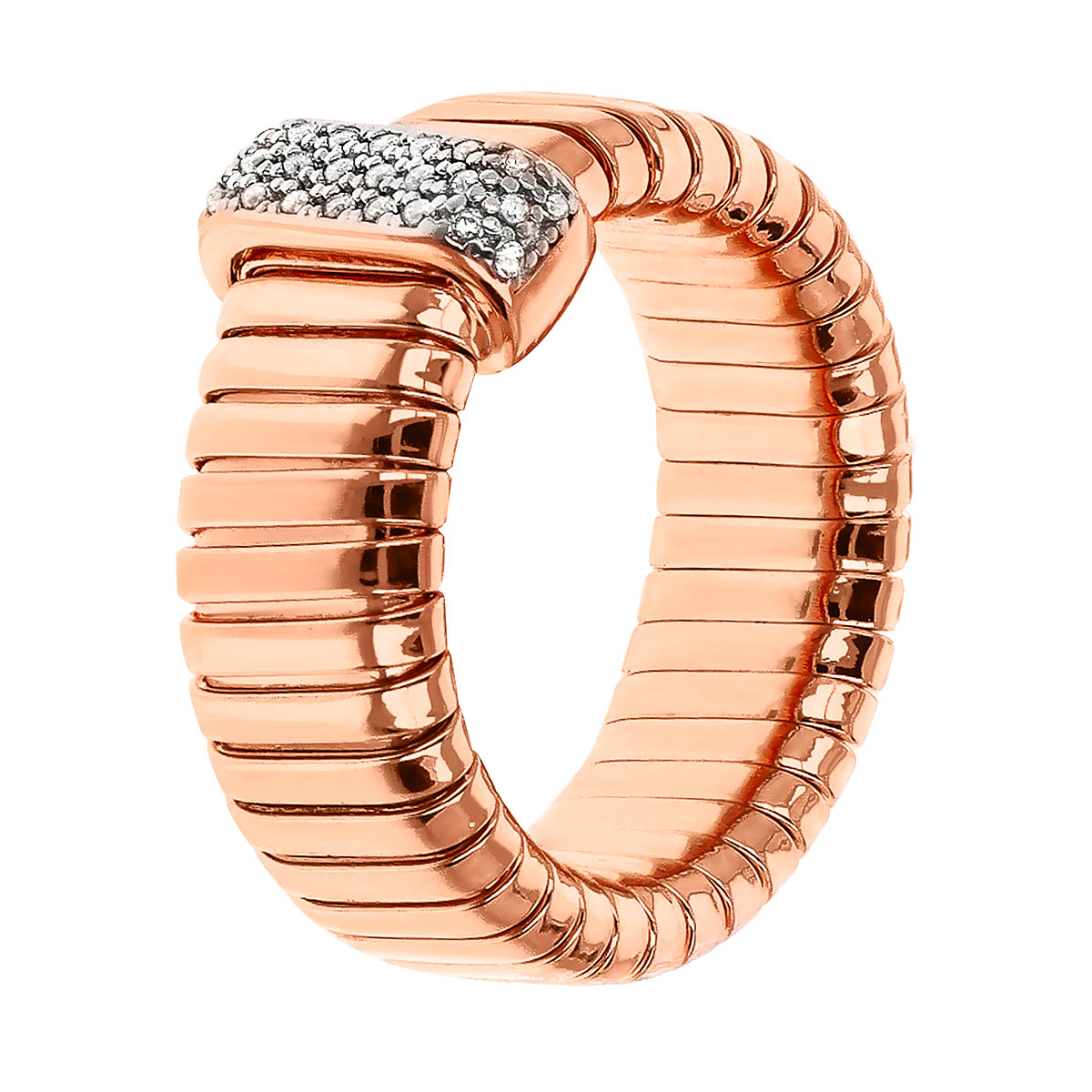 Bague Bronzallure Tubogas avec pavé d’oxydes de zirconium en plaqué or