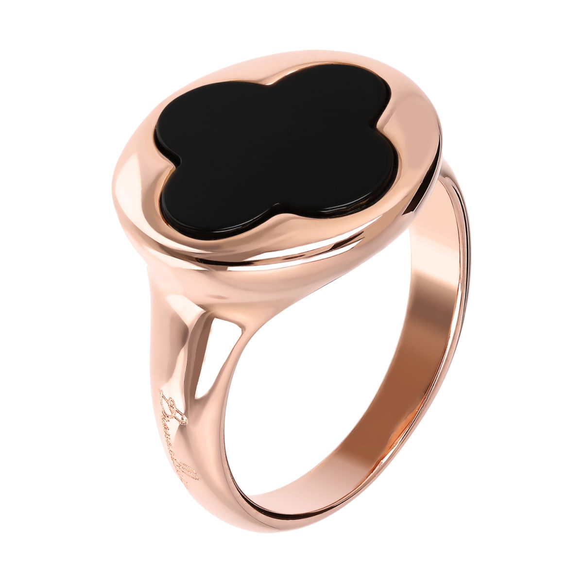 Bague chevalier Bronzallure réalisée sur une base Golden Rosé, plaquée or rose 18kt, agrémentée d'un trèfle à quatre feuilles rond en pierre naturelle à surface lisse. Création élégante, au design parfait pour rendre votre look unique.