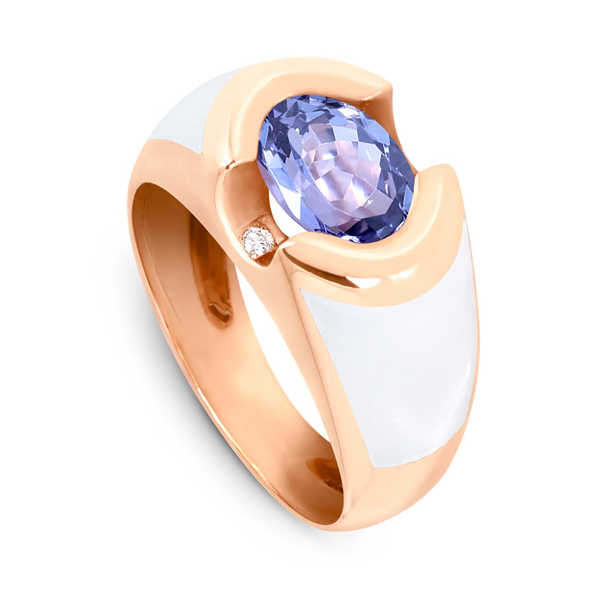 Bague Clozeau Tanzanite et diamants, résine blanche sur or rose