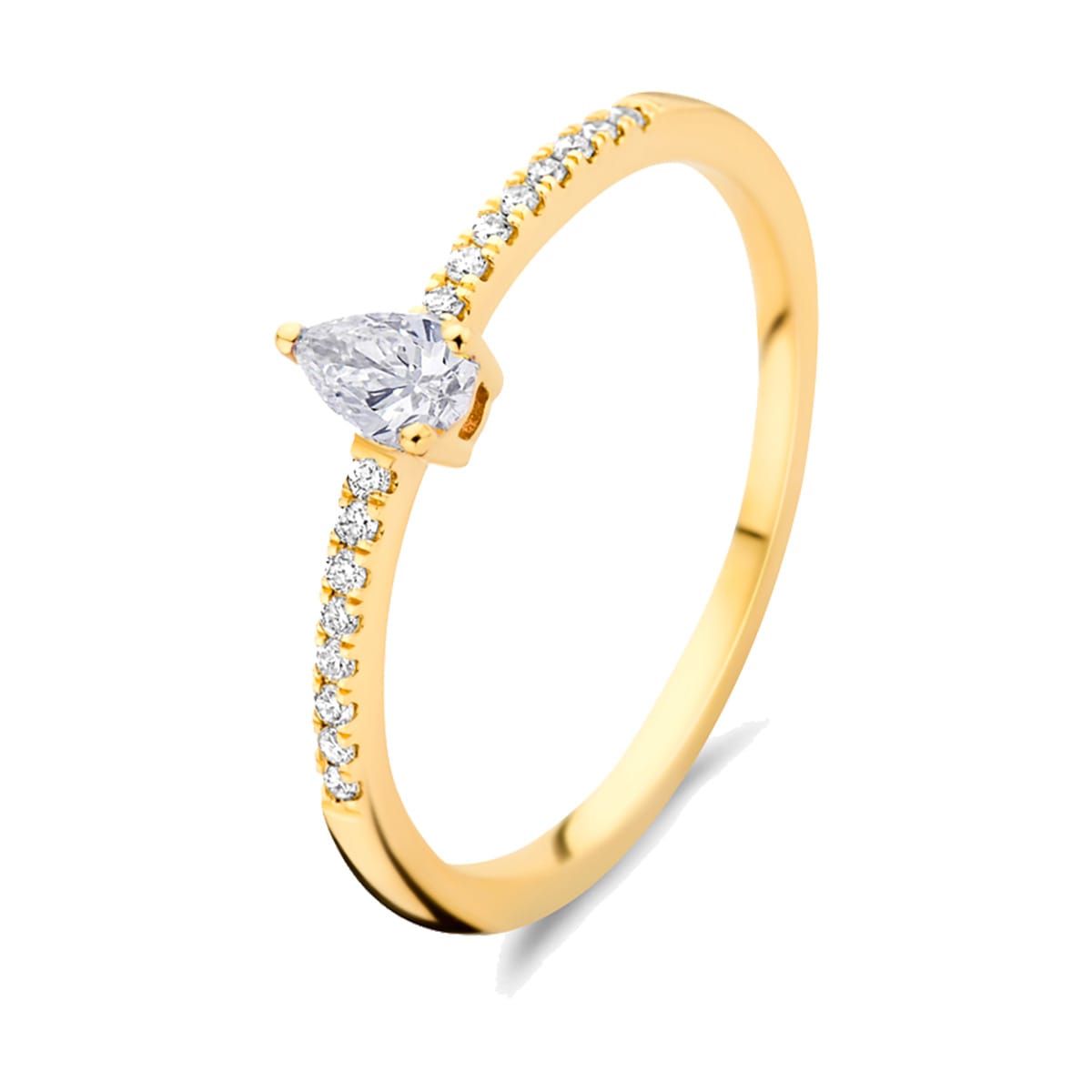 Bague Diamant taille Poire, descente de Diamants sur or jaune