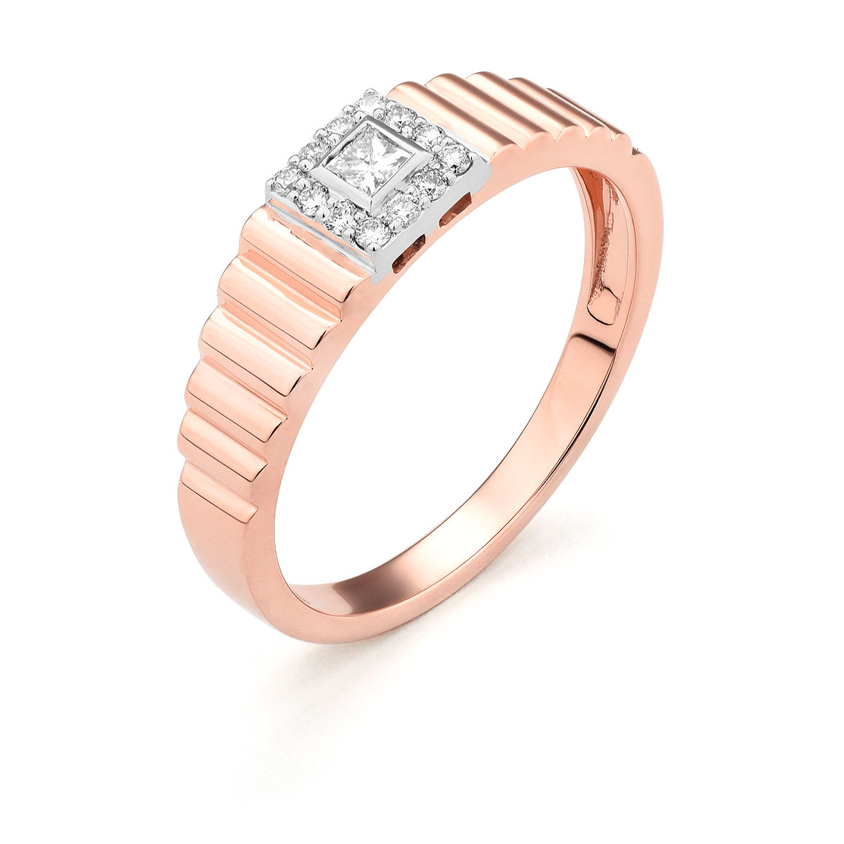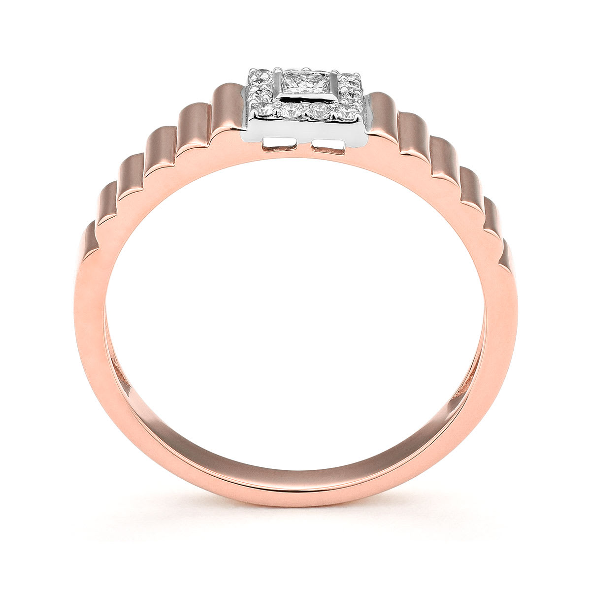 Bague or rose godron et motif carré Diamants