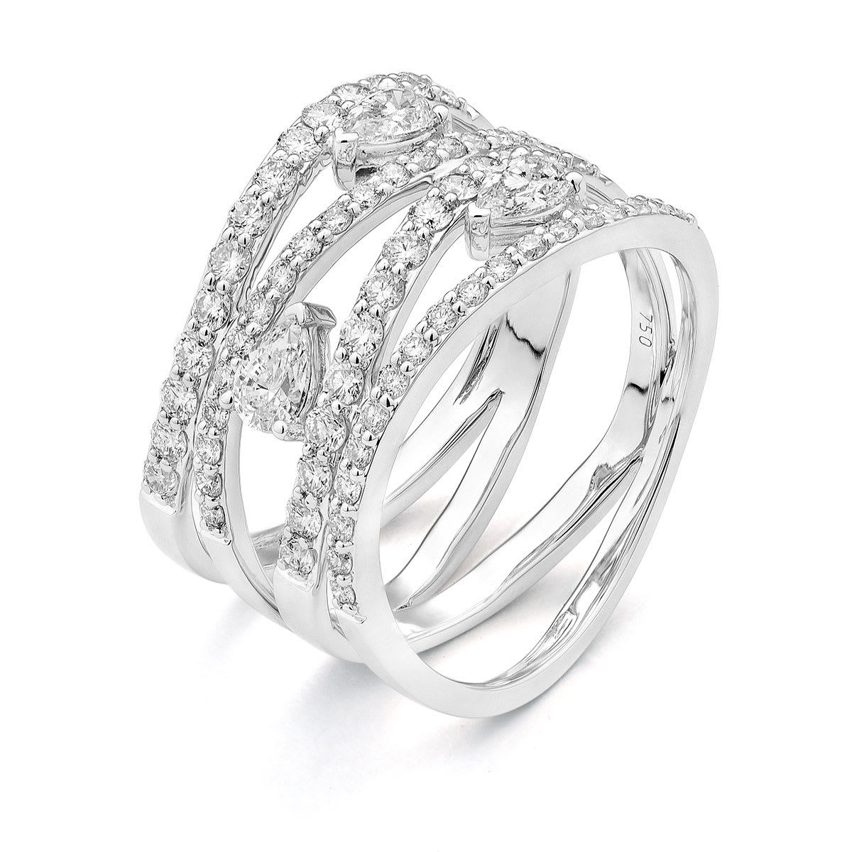 Bague liens avec diamants taille brillant et ses 3 diamants taille poire