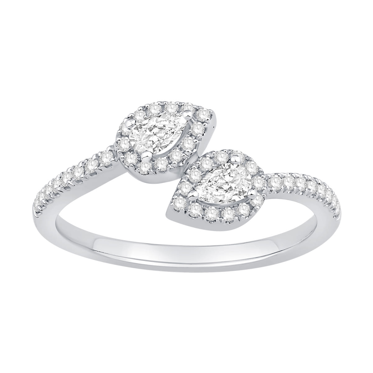 Bague toi et moi avec ses 2 diamants poire, serti 3 griffes, entourage diamants