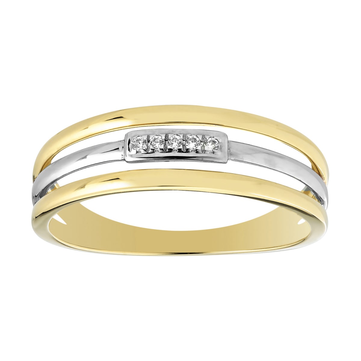 Bague 2 liens or jaune et un lien or gris avec ses 5 diamants