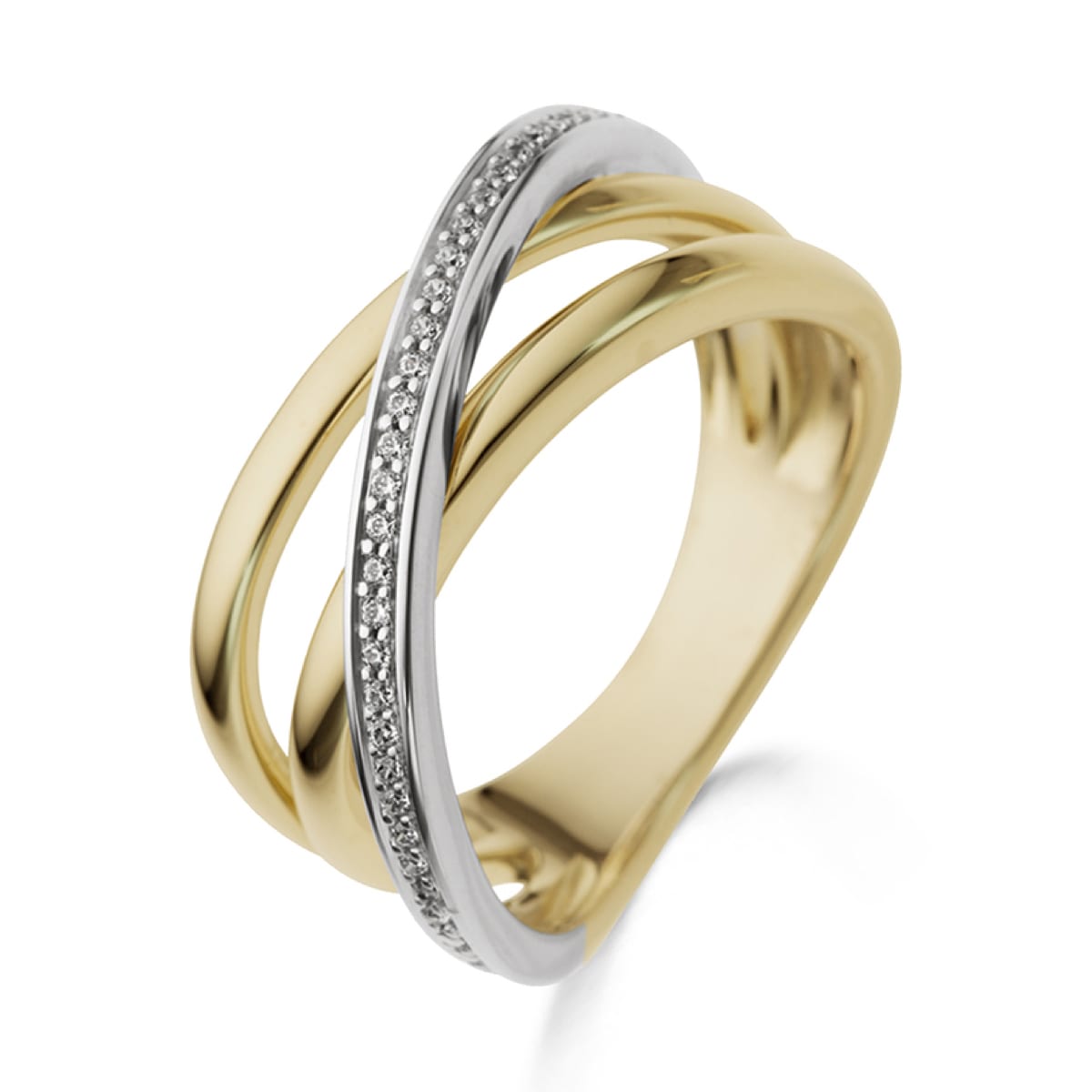 Délicate bague avec ses 2 anneaux or jaune et son un anneau or blanc serti de diamants
