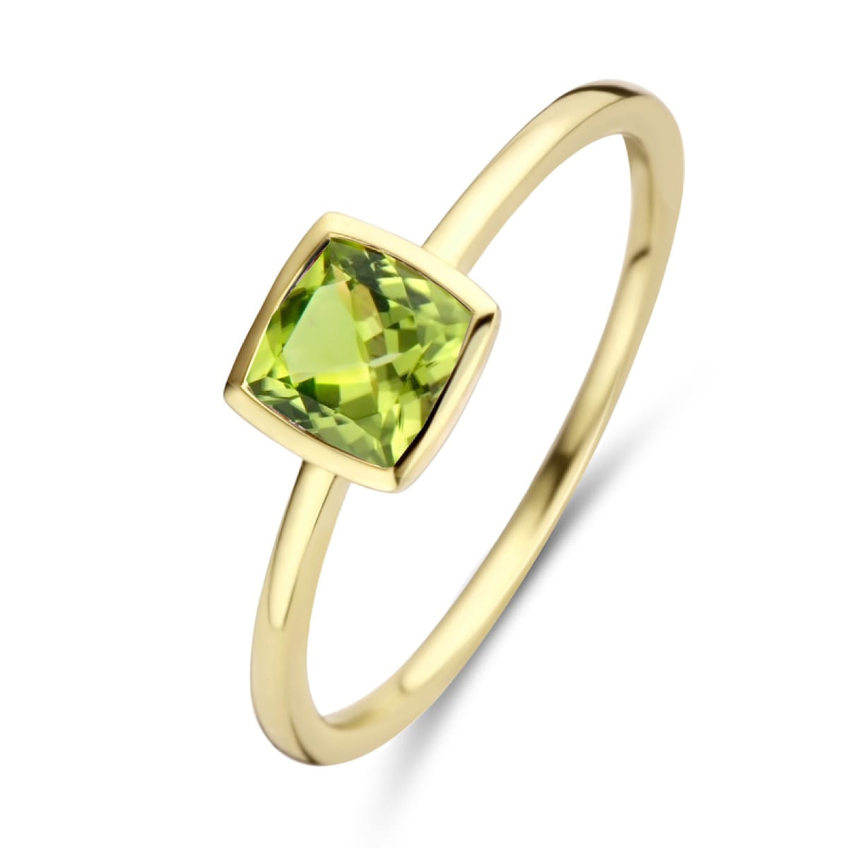 Délicate bague en or jaune avec son péridot de forme carré en serti clos