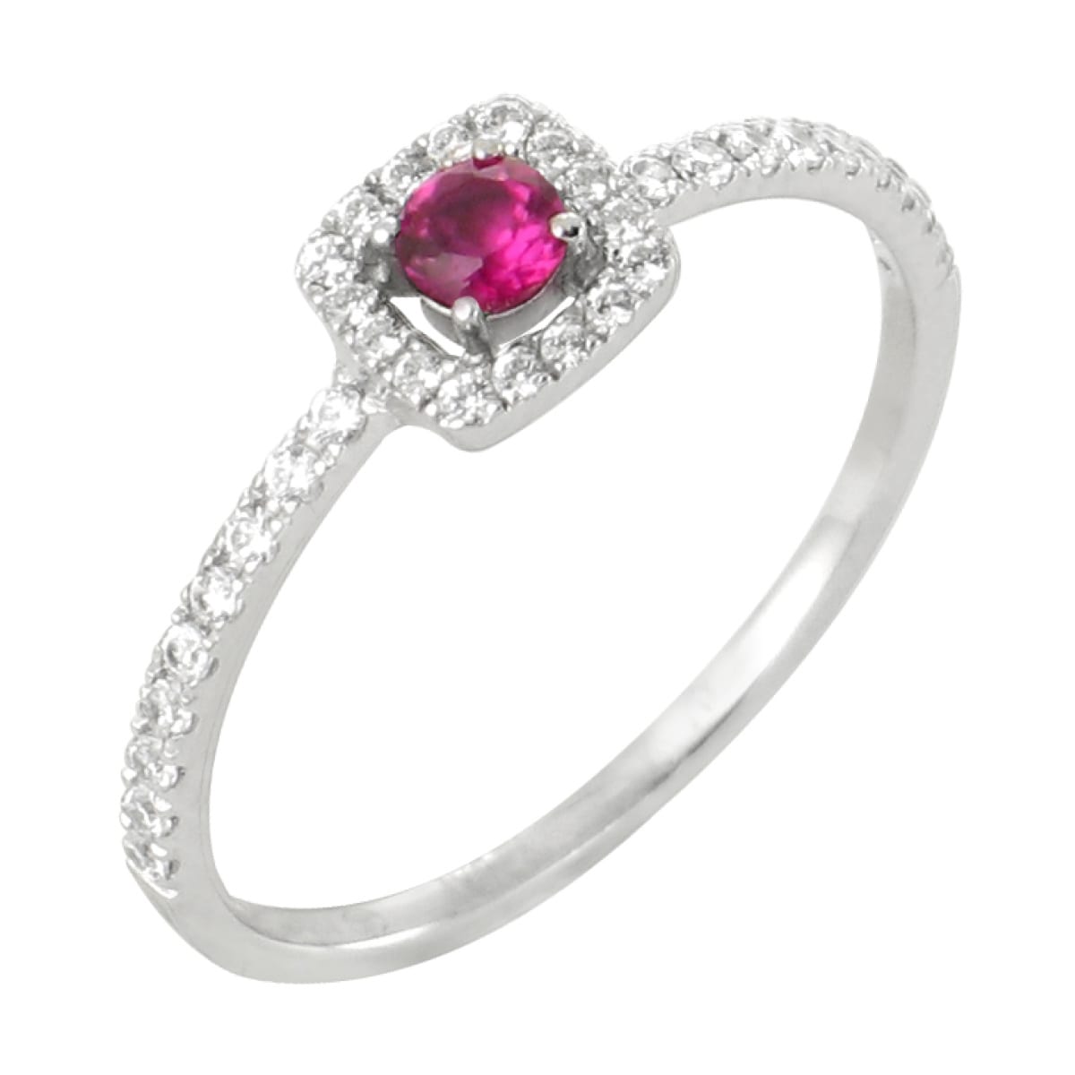 Bague rubis rond, serti 4 griffes, habillé de diamants sur un motif carré