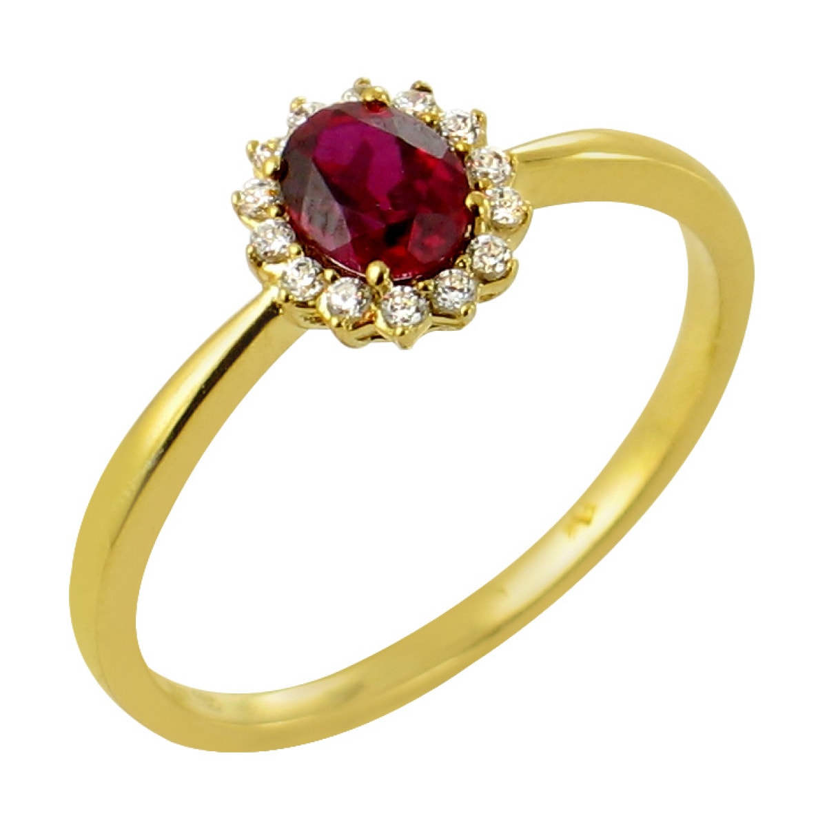 Bague or jaune avec son rubis ovale, serti 4 griffes, et son entourage diamants