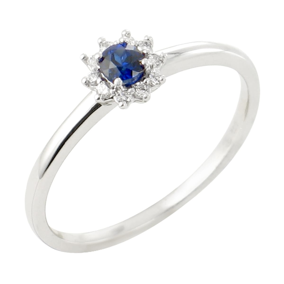 Bague or blanc avec son Saphir de Ceylan rond serti 4 griffes et délicat entourage de diamants. Un classique de la haute joaillerie !