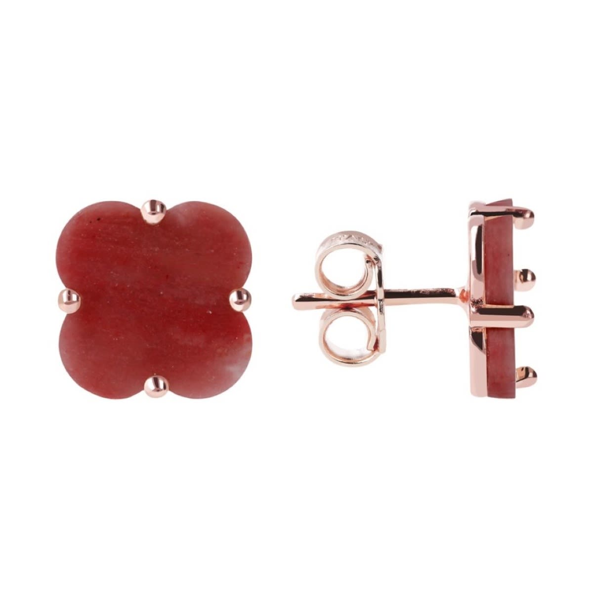 Boucles d’oreilles BRONZALLURE Boutons Trèfle en plaque or rose 18cts avec des quartzite Rouge