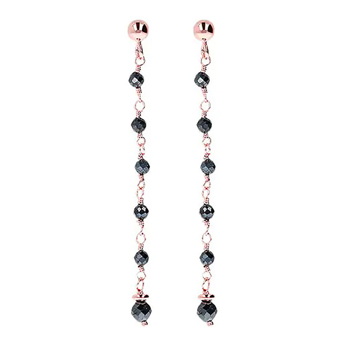 Boucles d’oreille BRONZALLURE Chapelet plaqué en or rose 18cts avec des Hématites ou des Spinelle.
