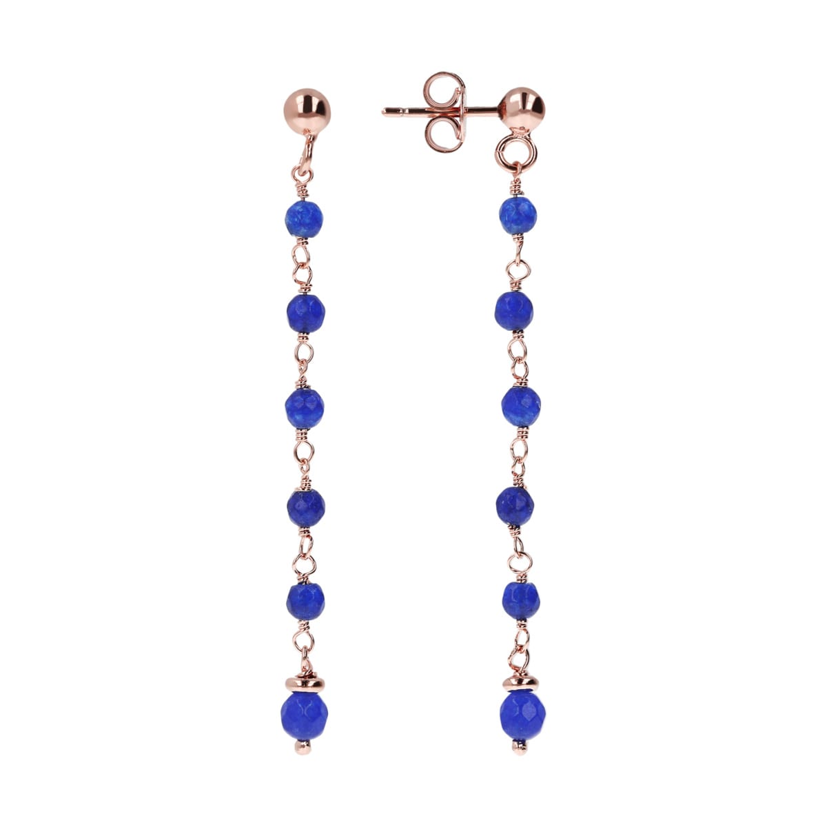 Bracelet BRONZALLURE Chapelet en plaque or rose 18cts avec des Agates Bleues