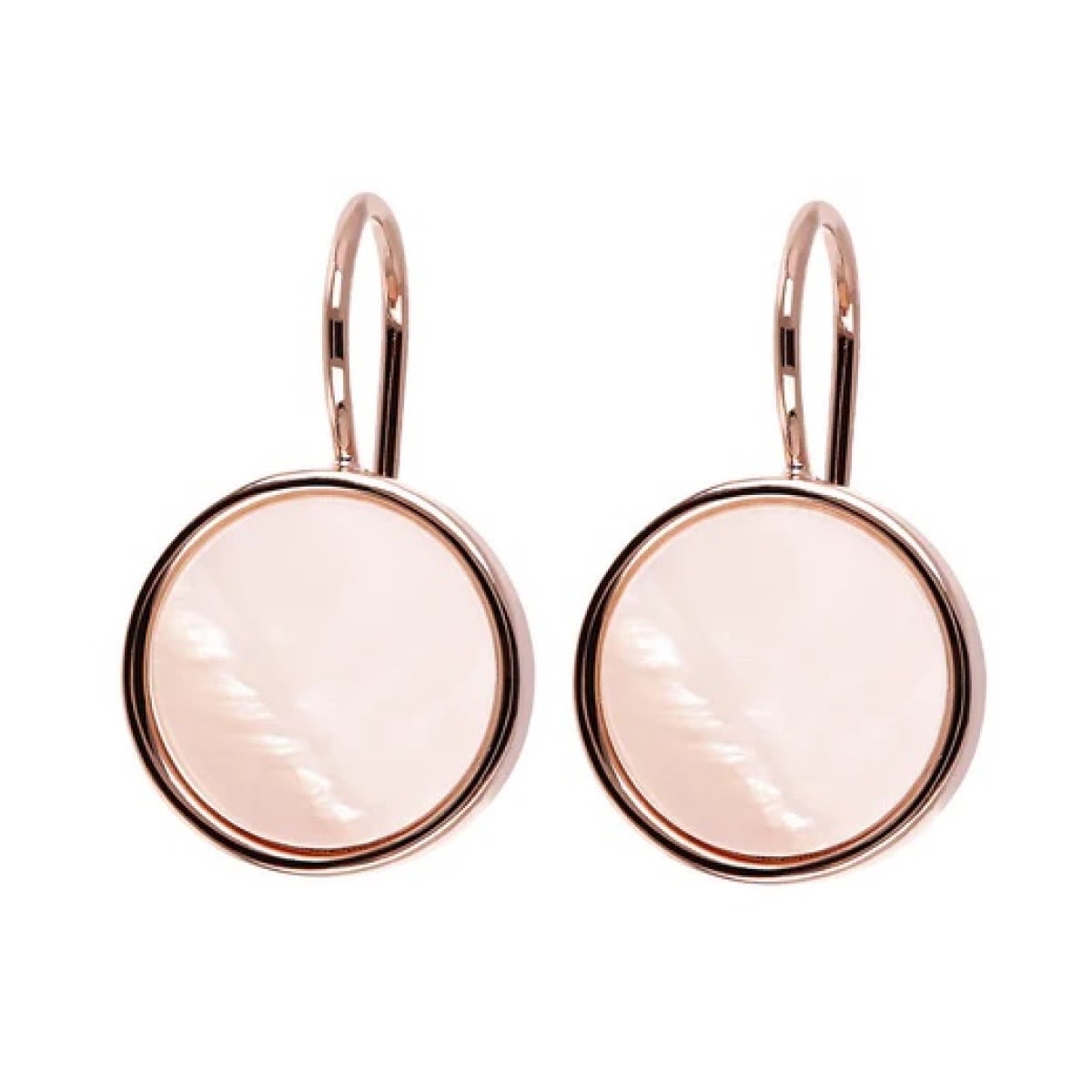 Boucles d’oreilles BRONZALLURE dormeuses en plaqué or rose 18cts avec un disque de pierres naturelles.