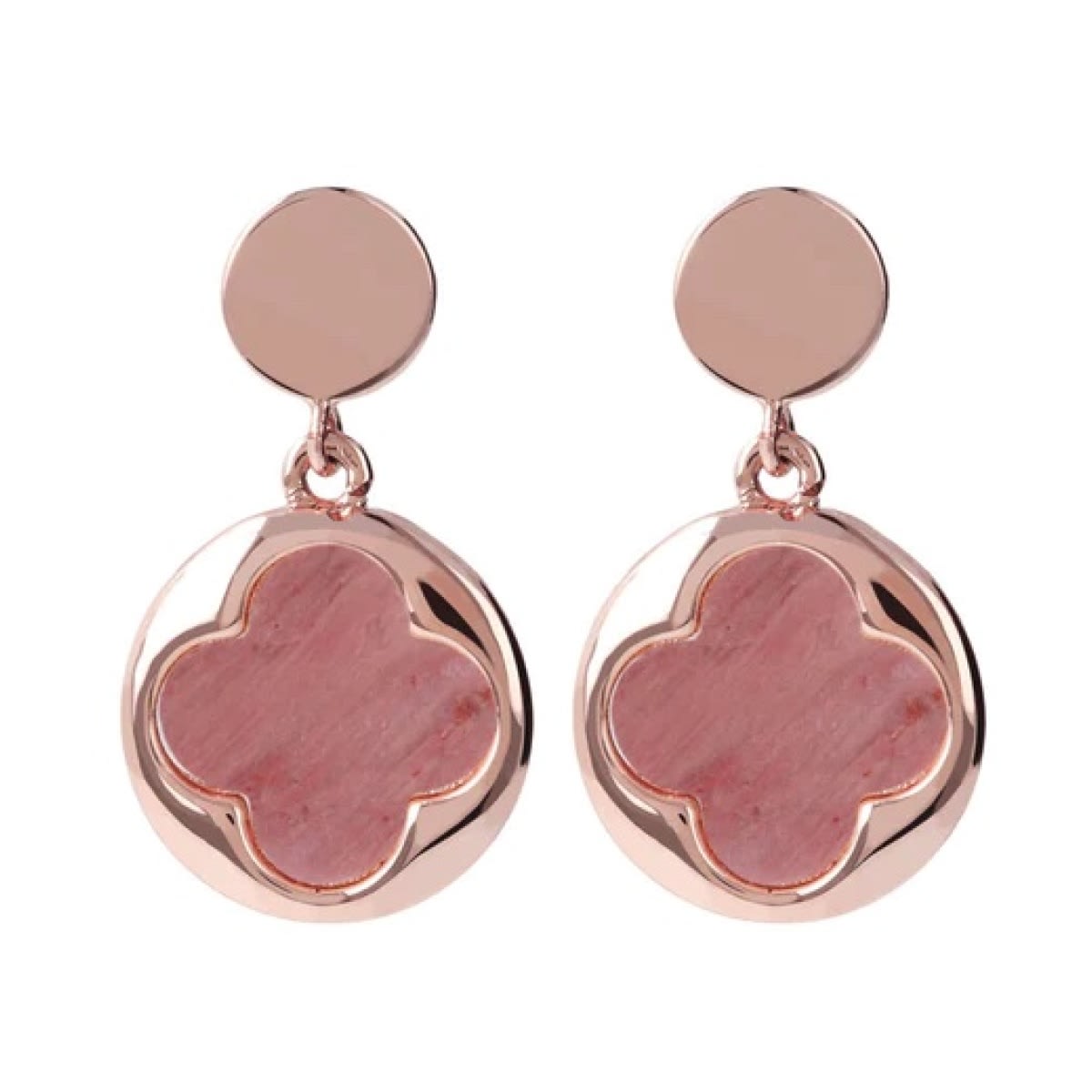 Boucles d’oreilles BRONZALLURE Pendantes Trèfle en plaque or rose 18cts avec des Quartzite Rouge