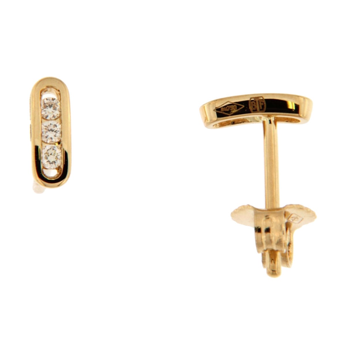 Boucle d’oreilles 3 diamants sur or jaune