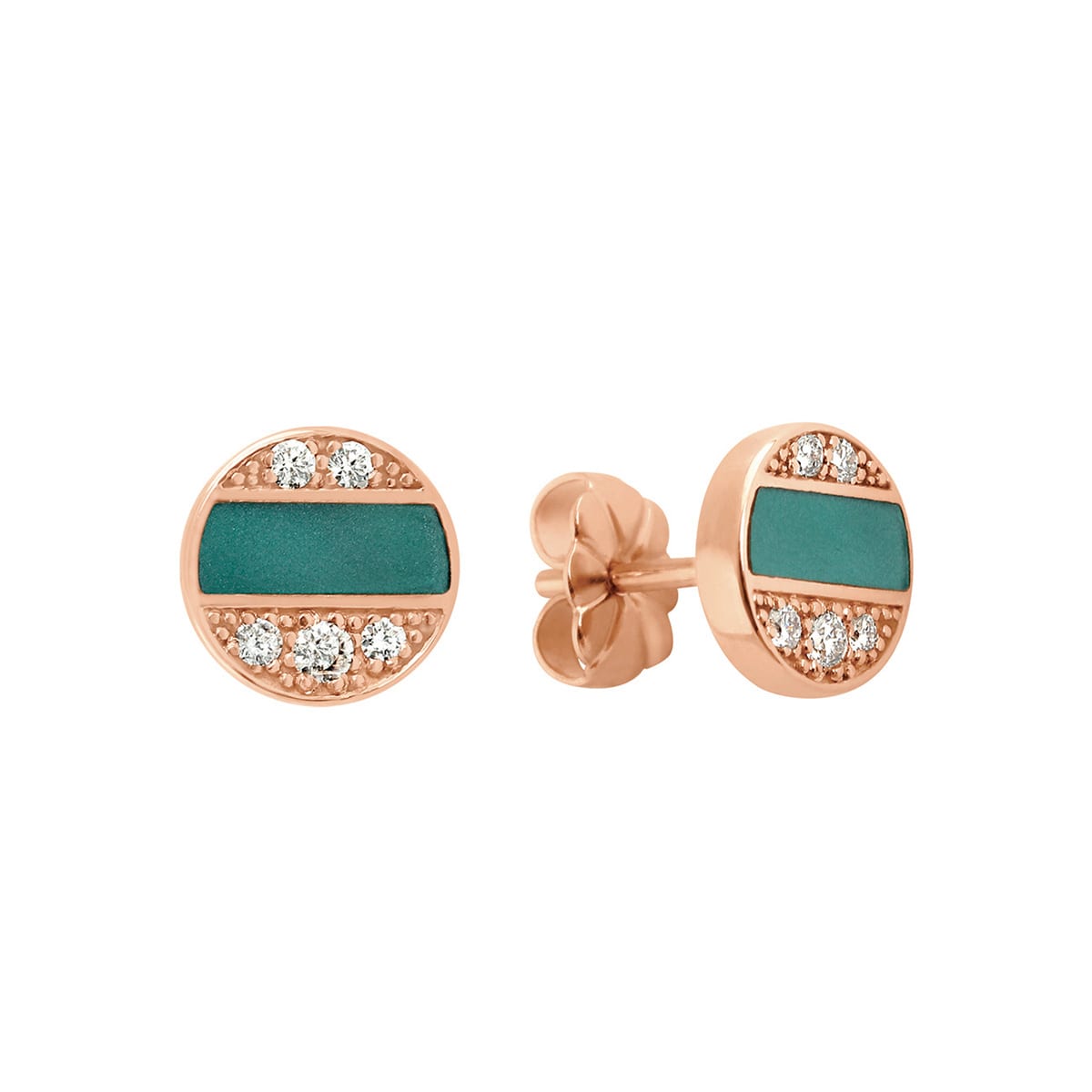 Boutons d’oreilles disque avec sa résine vert bronze et ses diamants