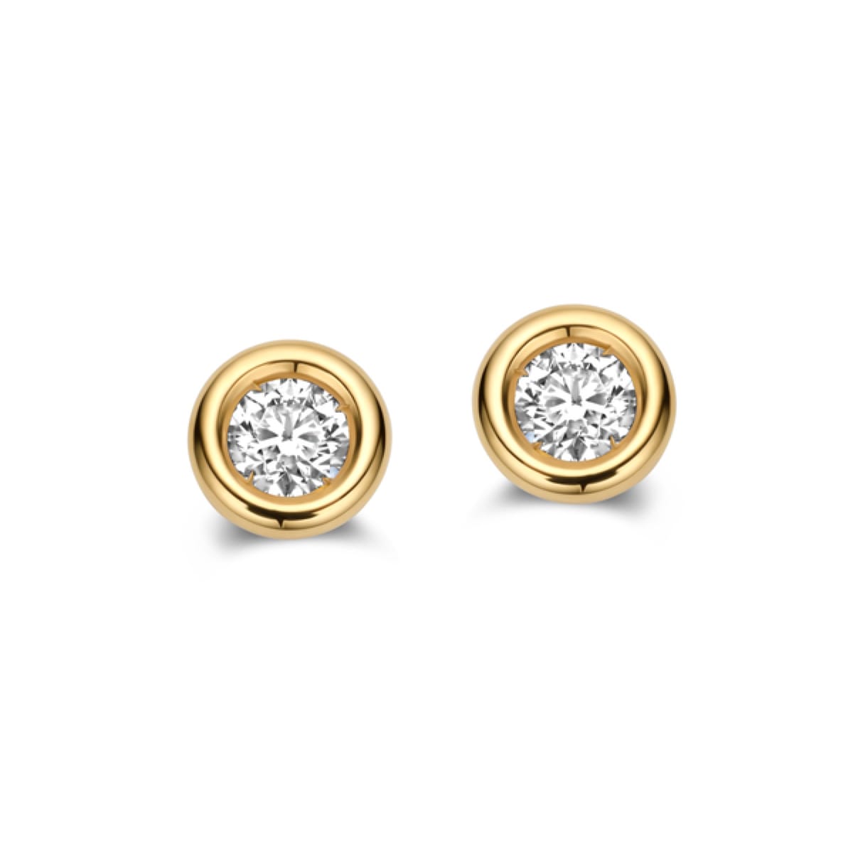 Grand classique que ces clous d'oreilles diamants taille brillant et serti clos en or jaune.