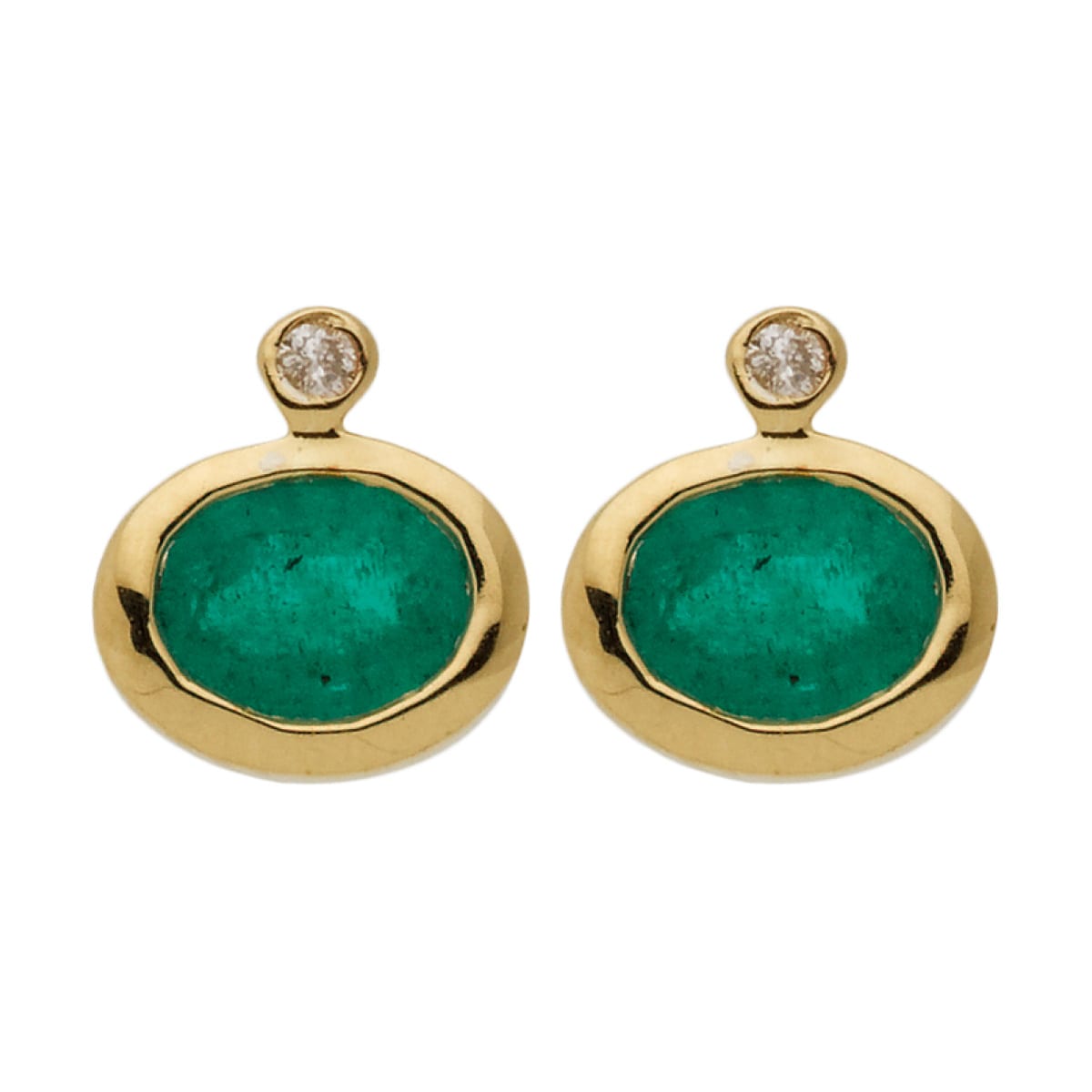 Boutons d’oreilles émeraude ovale et un diamant en serti clos