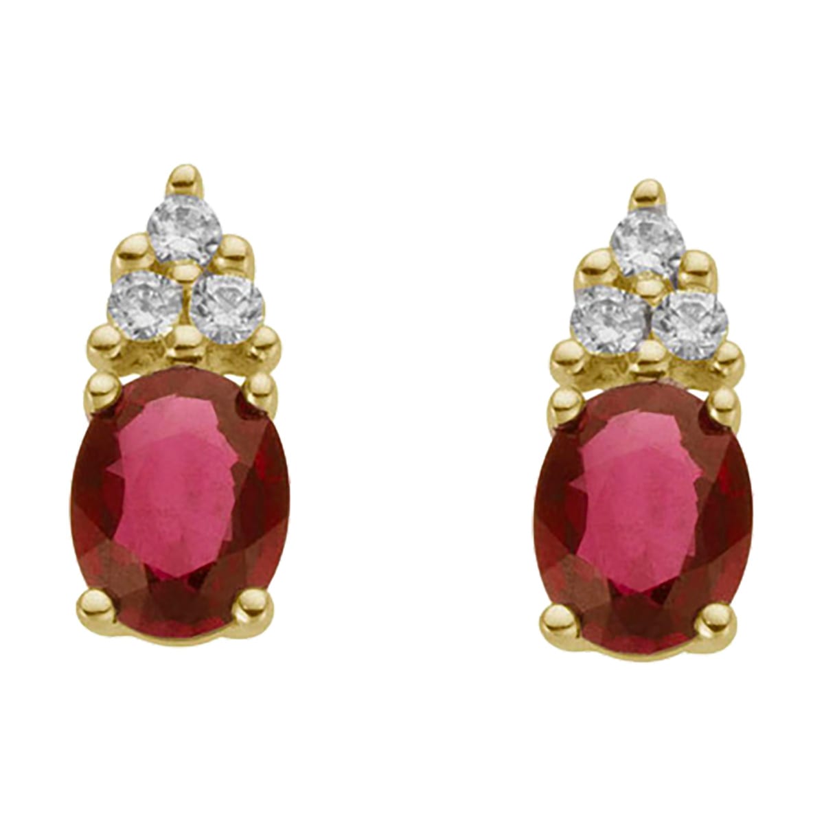 Boutons d’oreilles rubis ovale et diamants sur or jaune