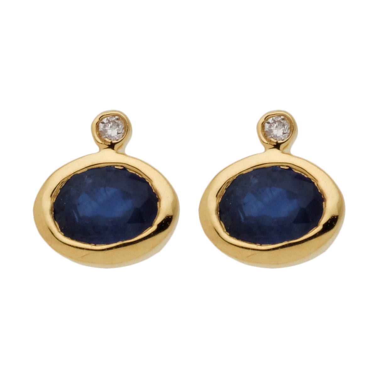 Boutons d’oreilles saphir ovale et diamant en or jaune