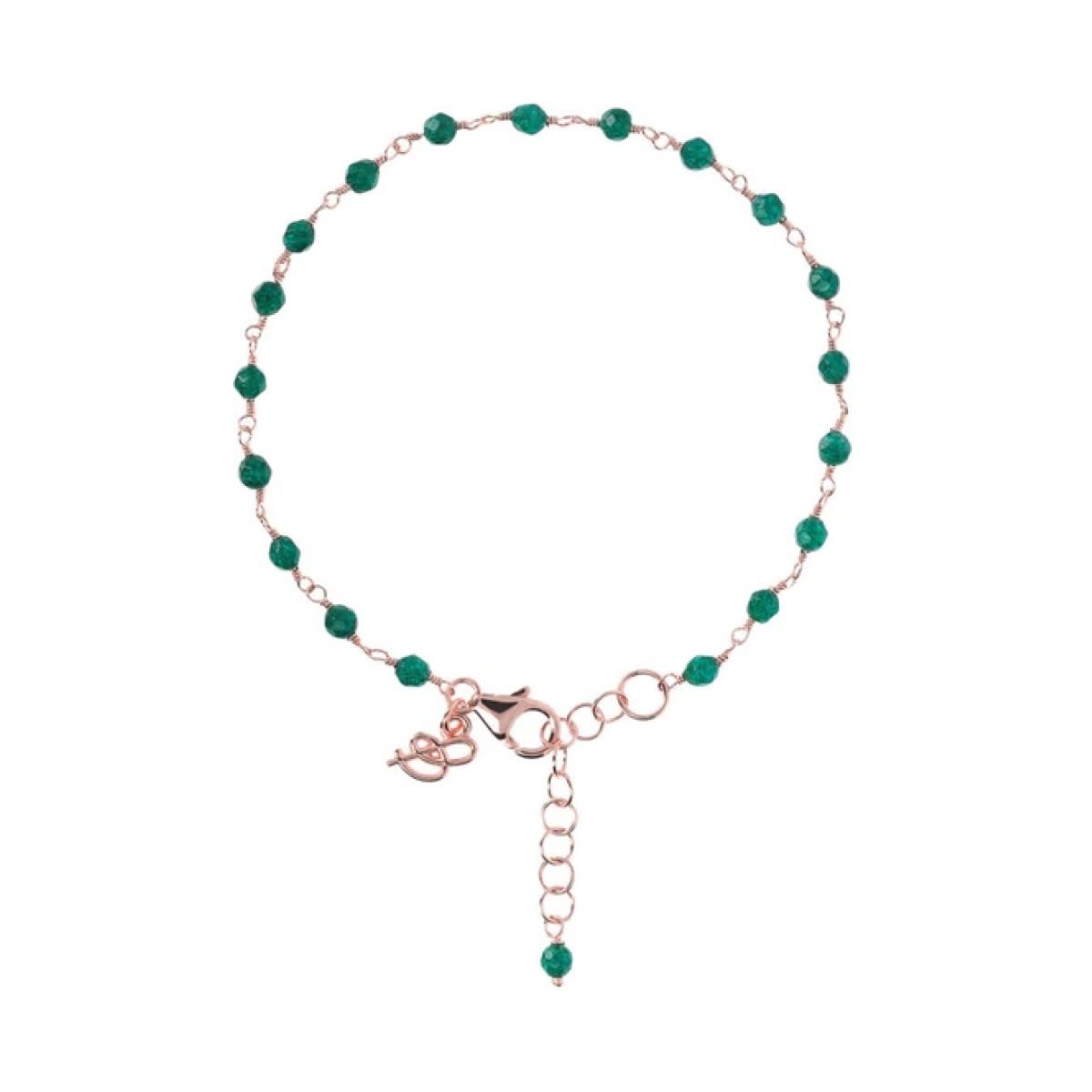 Bracelet BRONZALLURE Chapelet en plaque or rose 18cts avec des Agates Verte