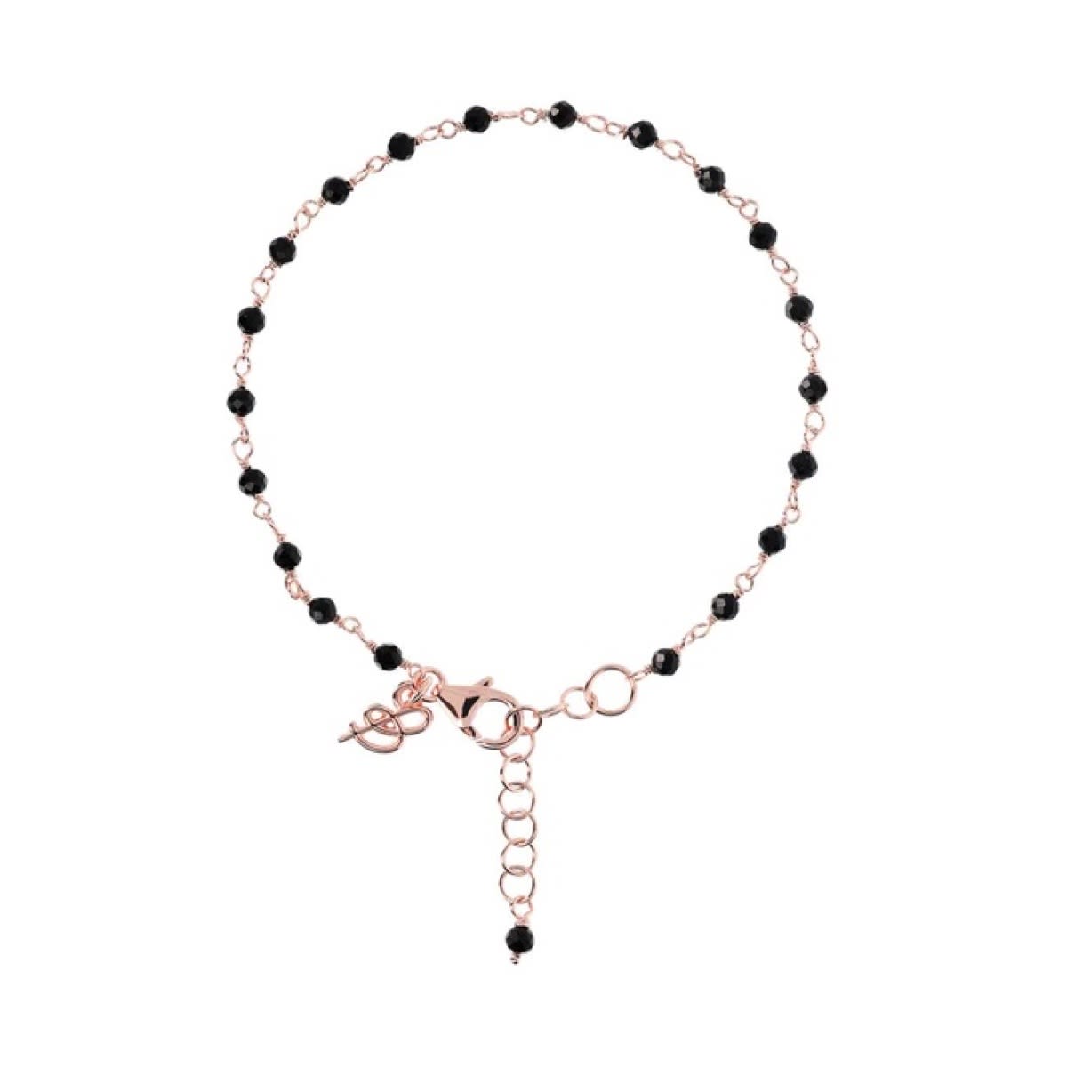 Bracelet BRONZALLURE Chapelet en plaque or rose 18cts avec des Spinelle noir enrobé