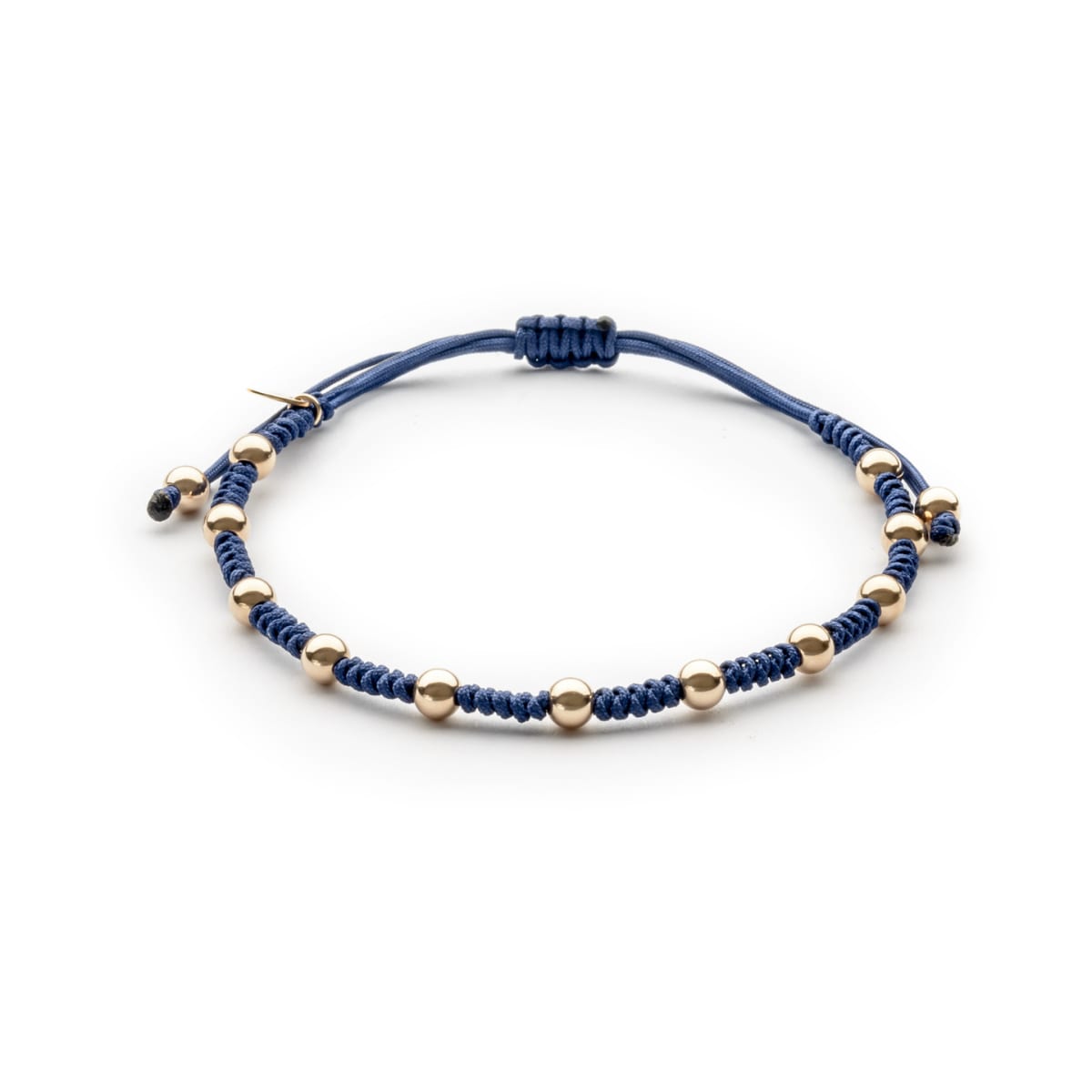 Bracelet macramé cordon bleu marine et 13 perles en or rose