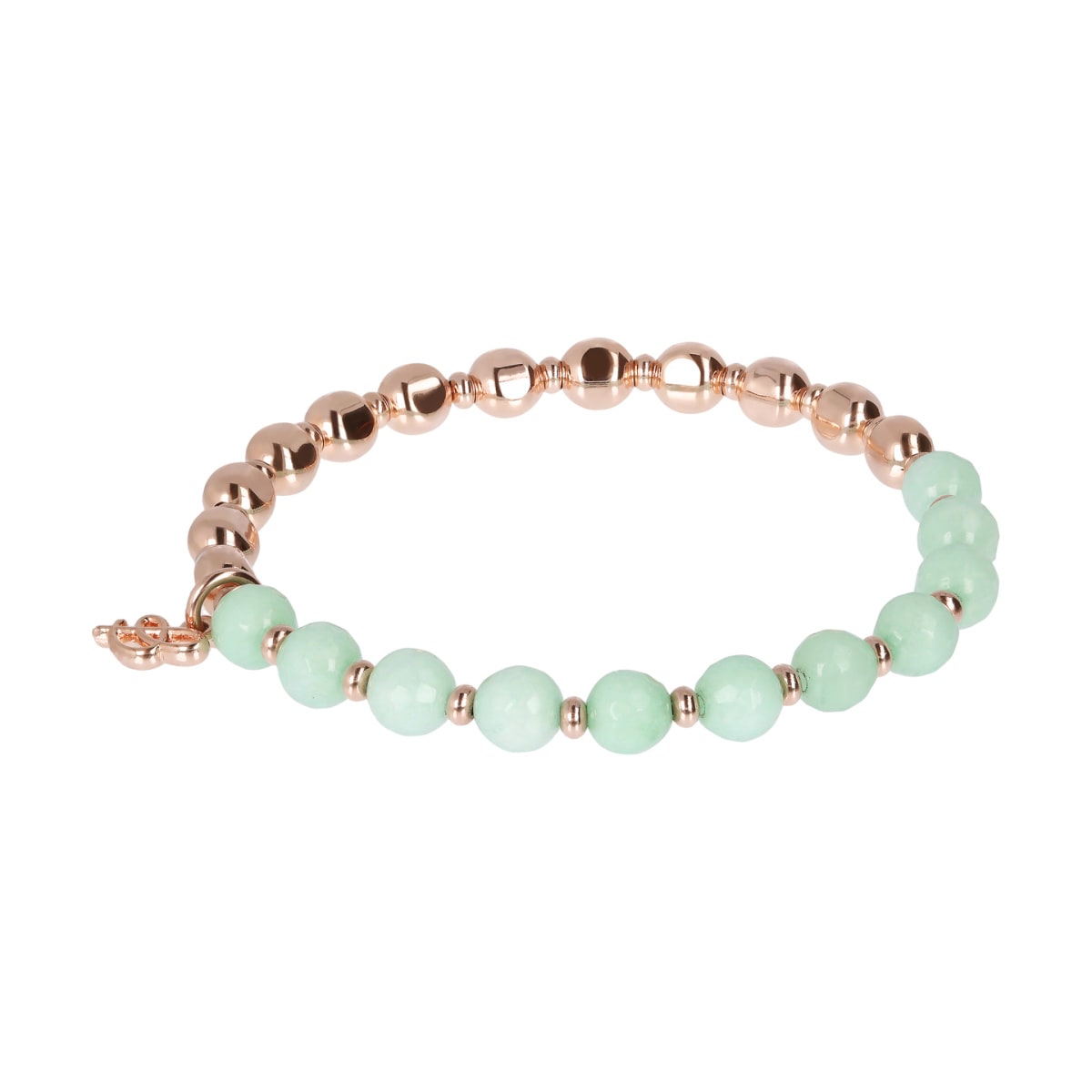 Bracelet élastique Bronzallure réalisé sur une base Golden Rosé, plaqué or rose 18kt, agrémenté de pierres naturelles facettées (6 mm) alternées de petites rondelles (3 mm) et de pépites dorées rosé (6 mm).