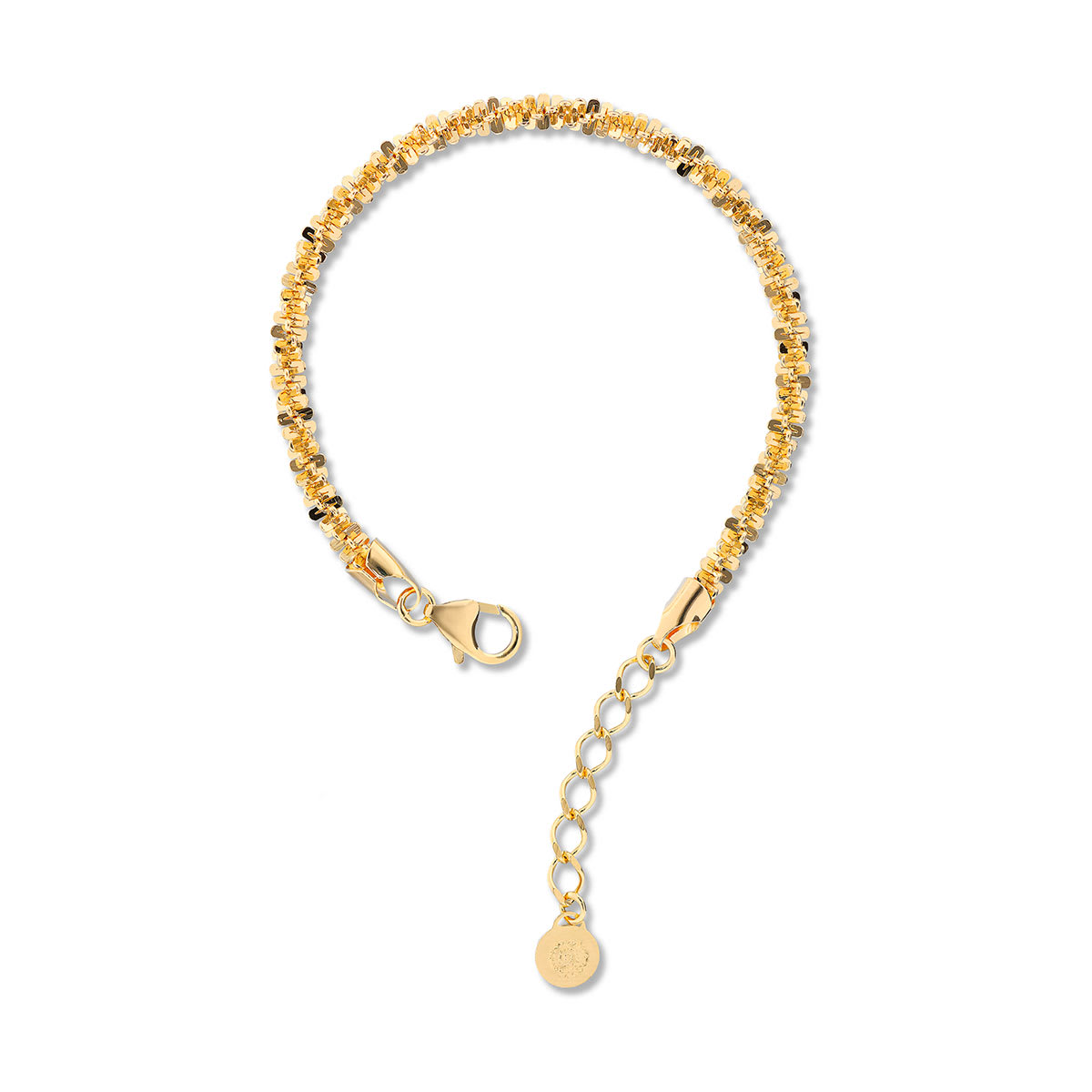 Bracelet Etrusca Joaillerie réalisé en alliage Golden, doré à l'or jaune fin 18ct, avec chaîne marguerite diamantée. Longueur 17+3 cm d'extension. Fermeture à mousqueton.
