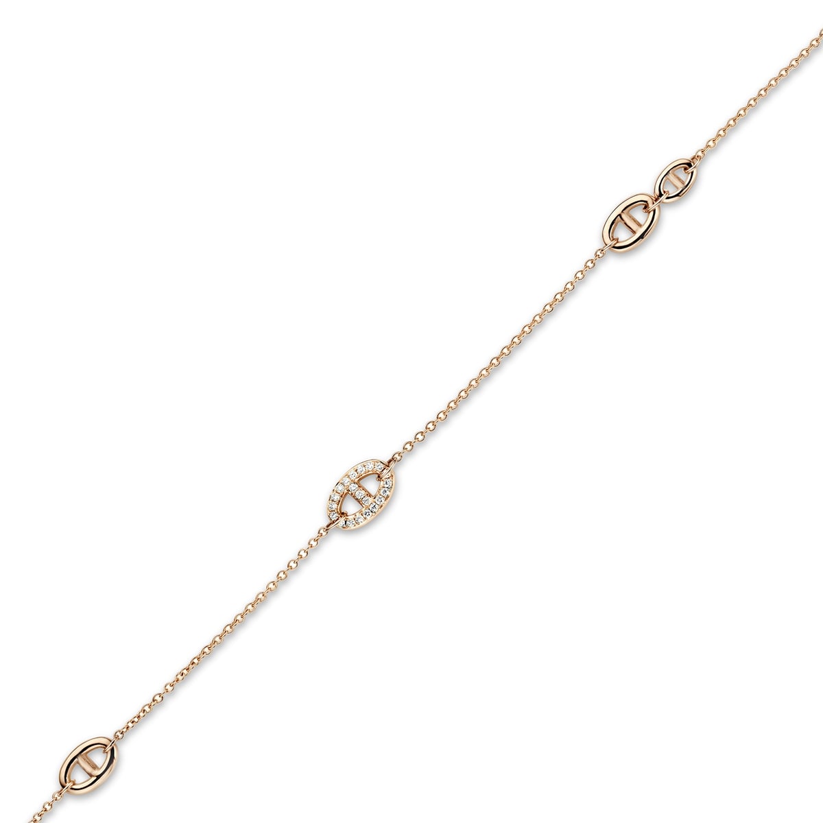 Délicat bracelet avec un motif maille marine diamants et 3 mailles marines unies polies en or rose.