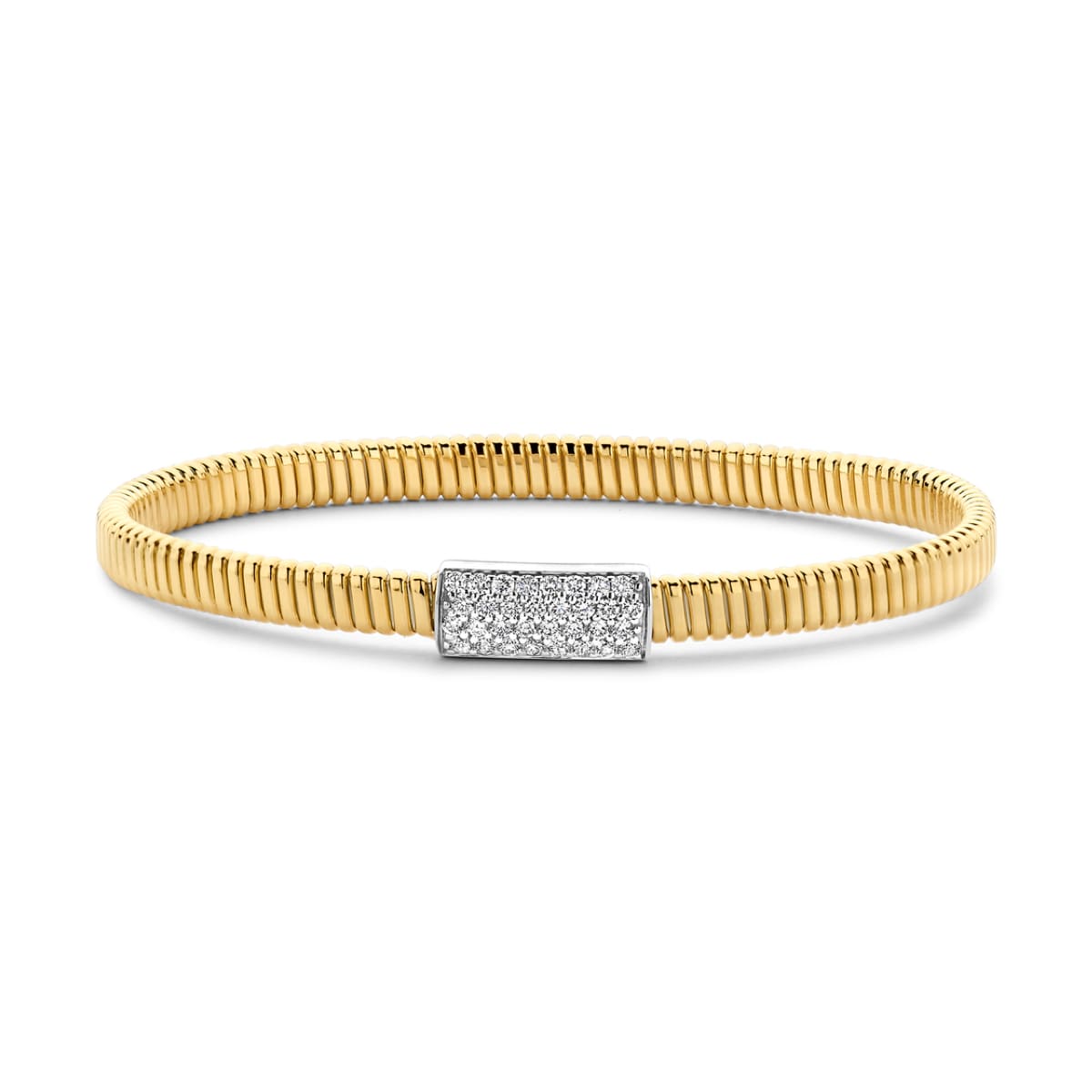 Bracelet rigide maille godron avec un joli motif diamants sur or jaune.