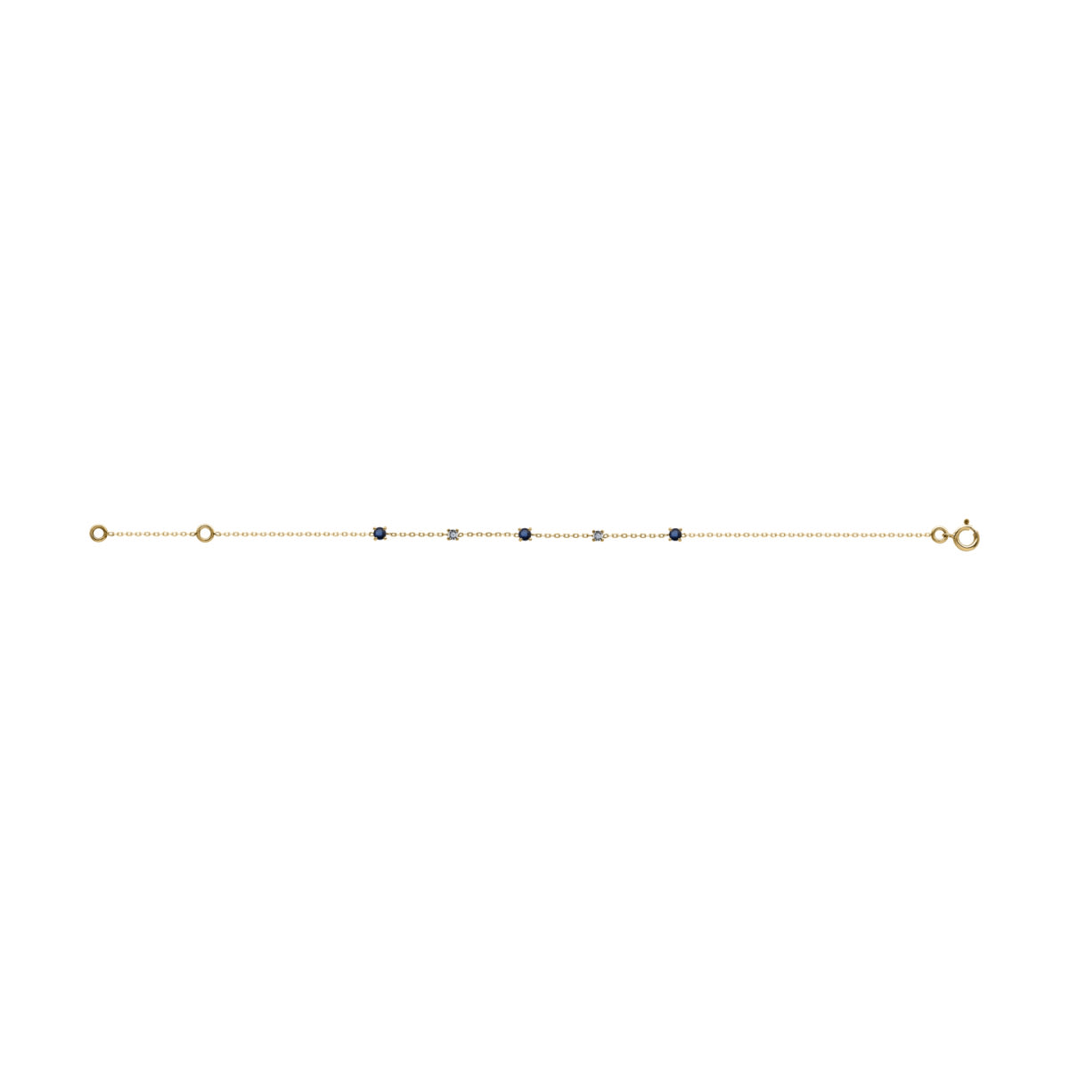 Bracelet souple en maille forçat alternant 3 saphirs bleus ronds et 2 diamants en taille brillant
