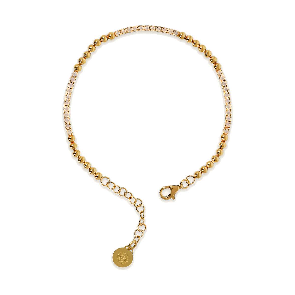 Bracelet tennis mixte Etrusca Gioielli en argent 925, doré à l'or fin 18ct, agrémenté de petites sphères dorées alternant avec des zircons cubiques, qualité lumineuse; fermoir mousqueton avec rallonge.