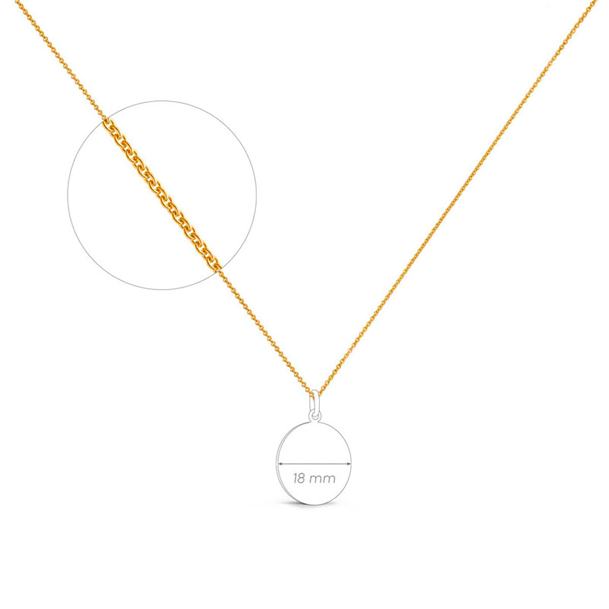 Cette chaîne en maille forçat rond est en or jaune 18 carats. Le diamètre du fil est de 0,30 mm. La longueur de la chaîne est de 40 centimètres, elle se ferme par un mousqueton.