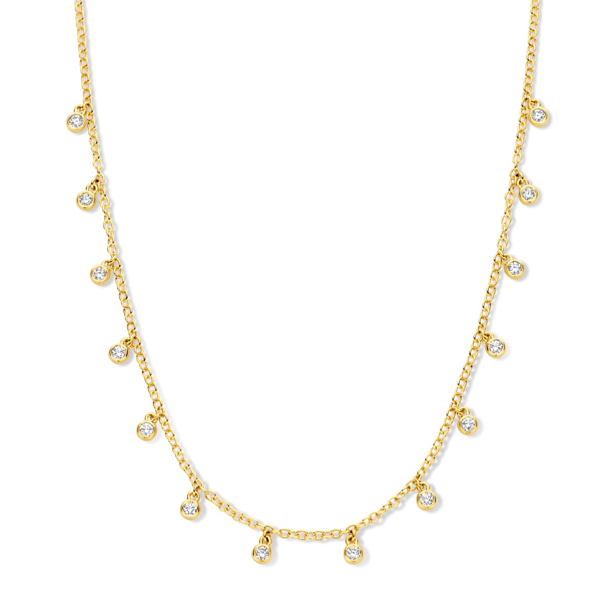 Délicat collier en or jaune avec ses 14 diamants en pampille