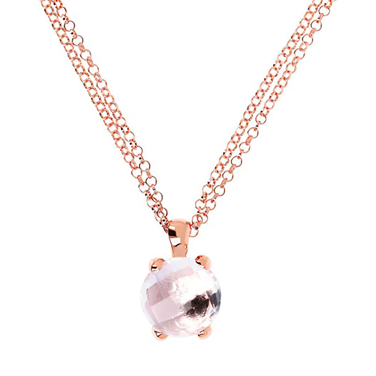 Collier BRONZALLURE multi chaînes avec pendentif en plaque or rose 18cts en crystal Quartz