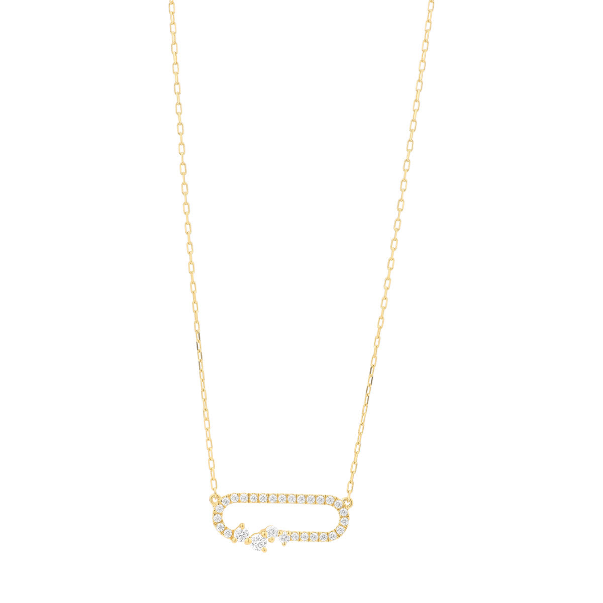 Une chaine délicate en or jaune qui dévoile son motif ovale pavé de diamants. Le petit plus du joaillier, c'est la non symétrie du motif diamants qui apporte à ce collier une touche de folie créative. Féminin et élégant, il donne de l'éclat à celle qui le porte.