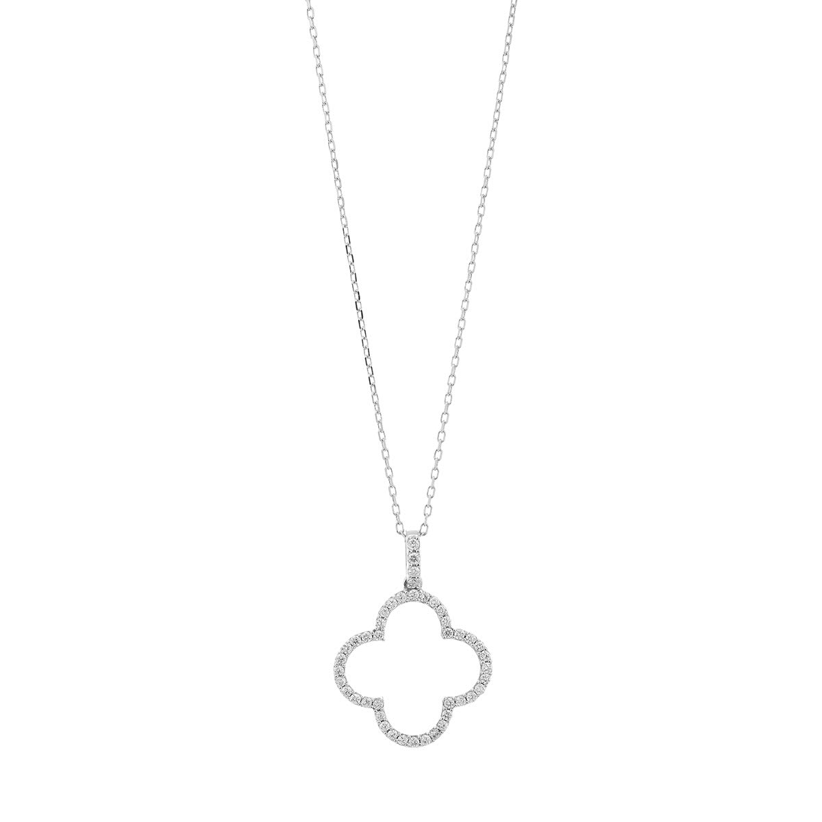 Collier forme trèfle pavé Diamants sur or blanc