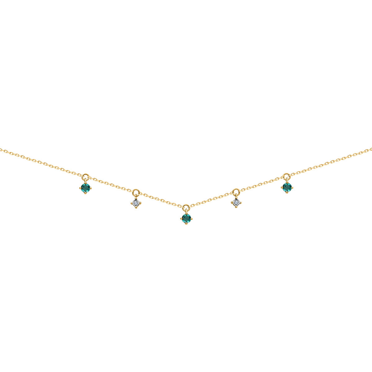 Collier en maille forçat et ses 3 pampilles émeraudes et ses 2 pampilles diamants en serti 4 griffes
