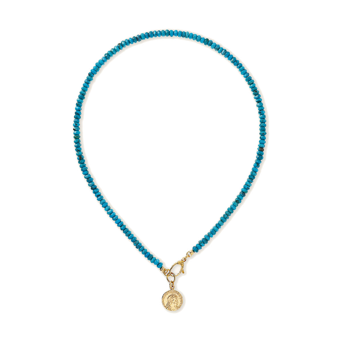 Collier Etrusca en turquoise avec sa médaille plaqué or, 42 cm