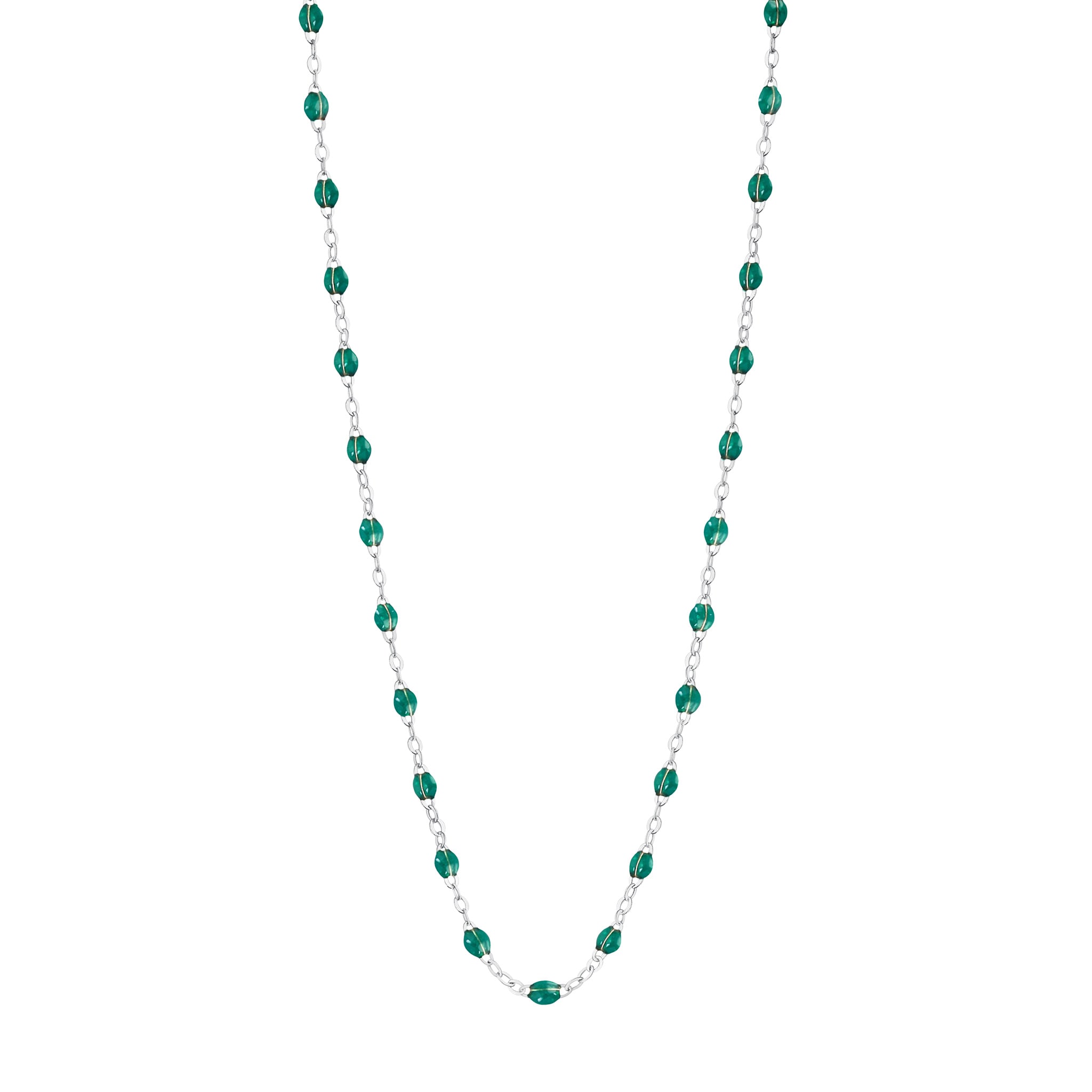Collier or gris, résine émeraude, 42 cm