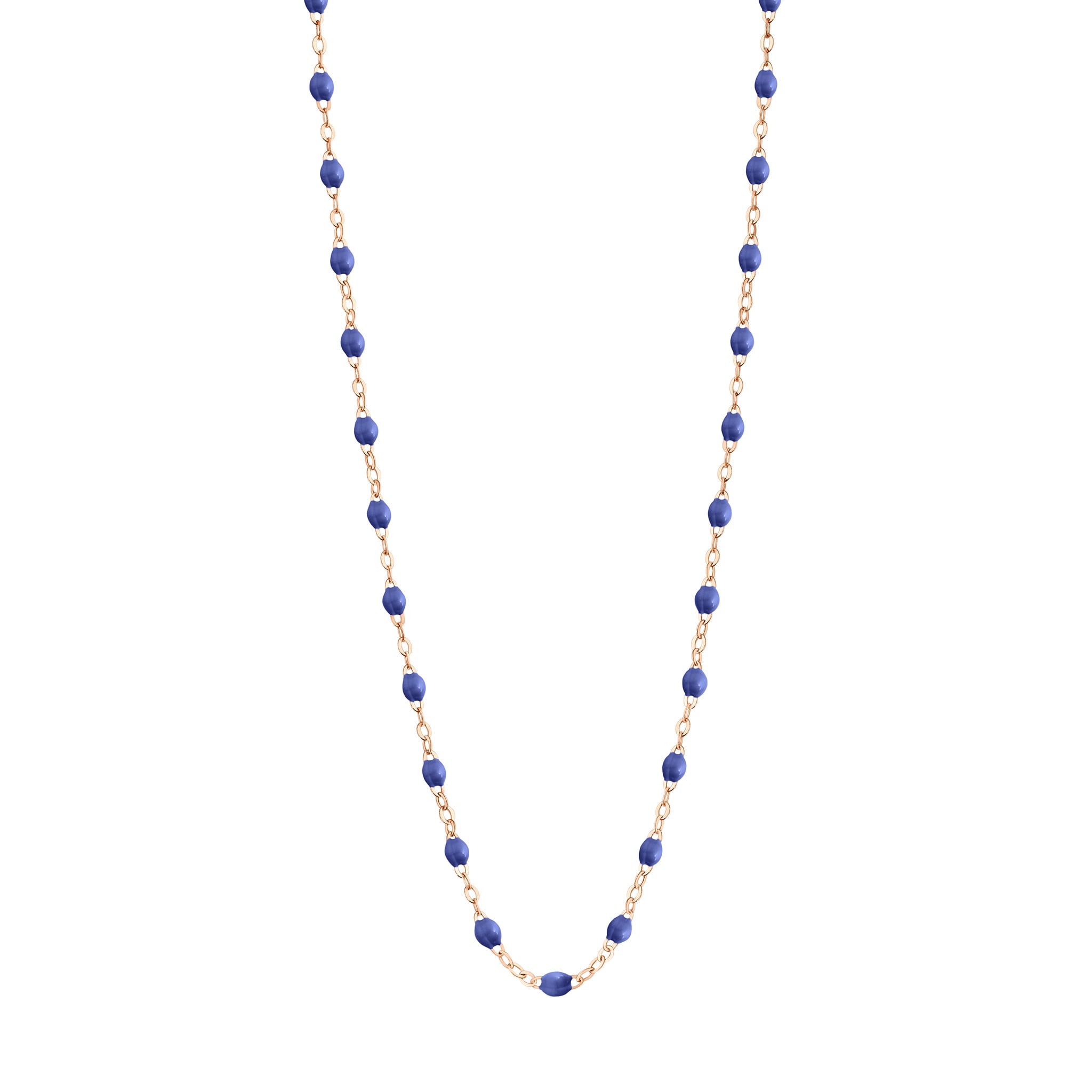 Collier or rose, résine bleuet, 42 cm