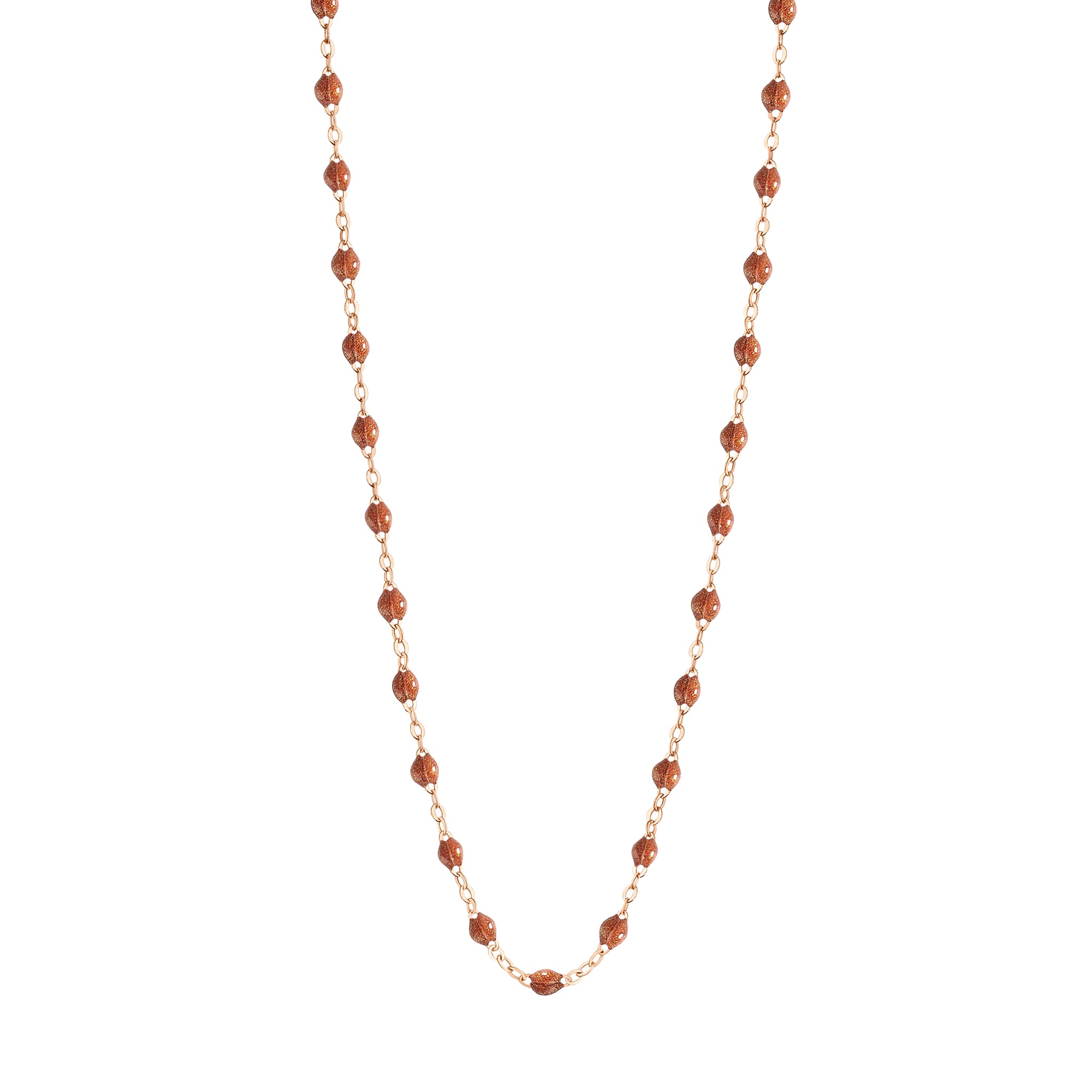 Collier or rose, résine fauve, 42 cm
