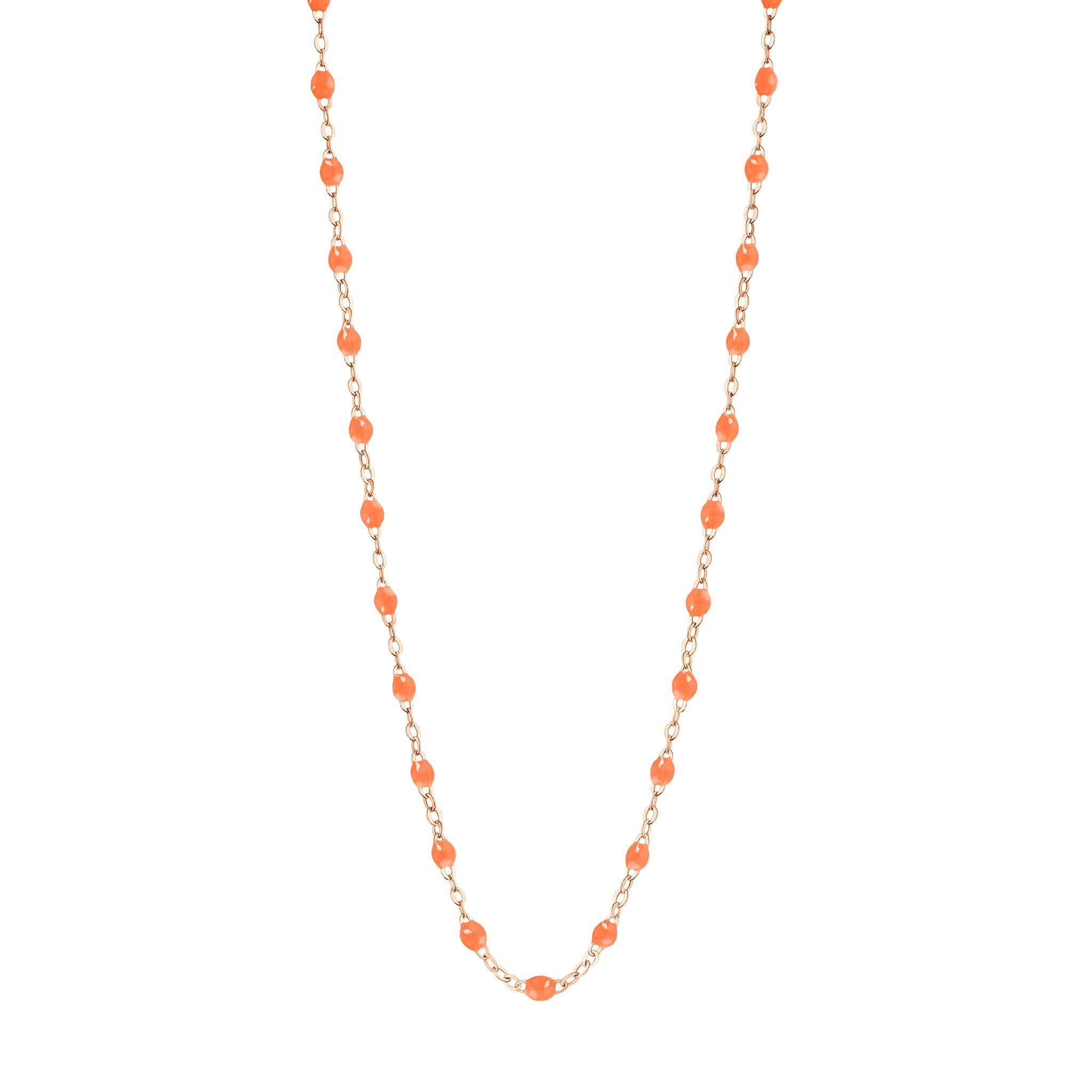 Collier or rose, résine orange fluo, 42 cm