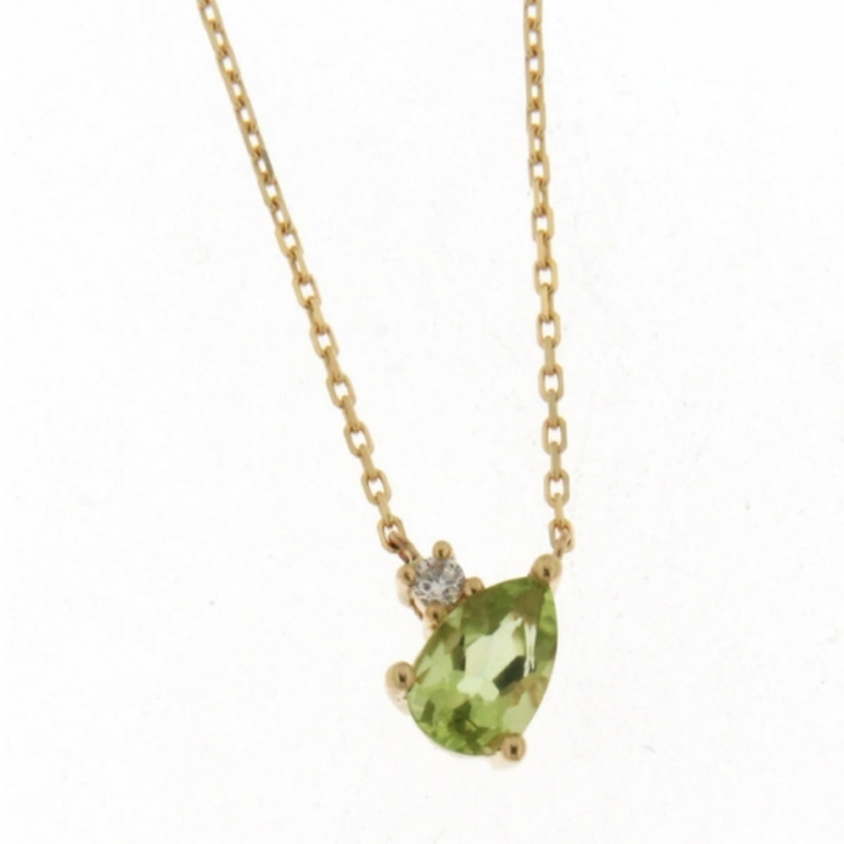 Collier tout en gourmandise avec son péridot en forme de poire et son diamant.