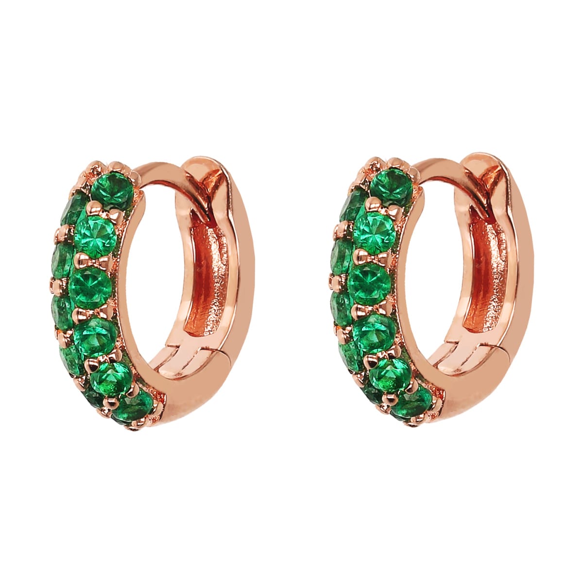 Créoles pavé d’oxydes de zirconium vert sur or plaqué rosée doré