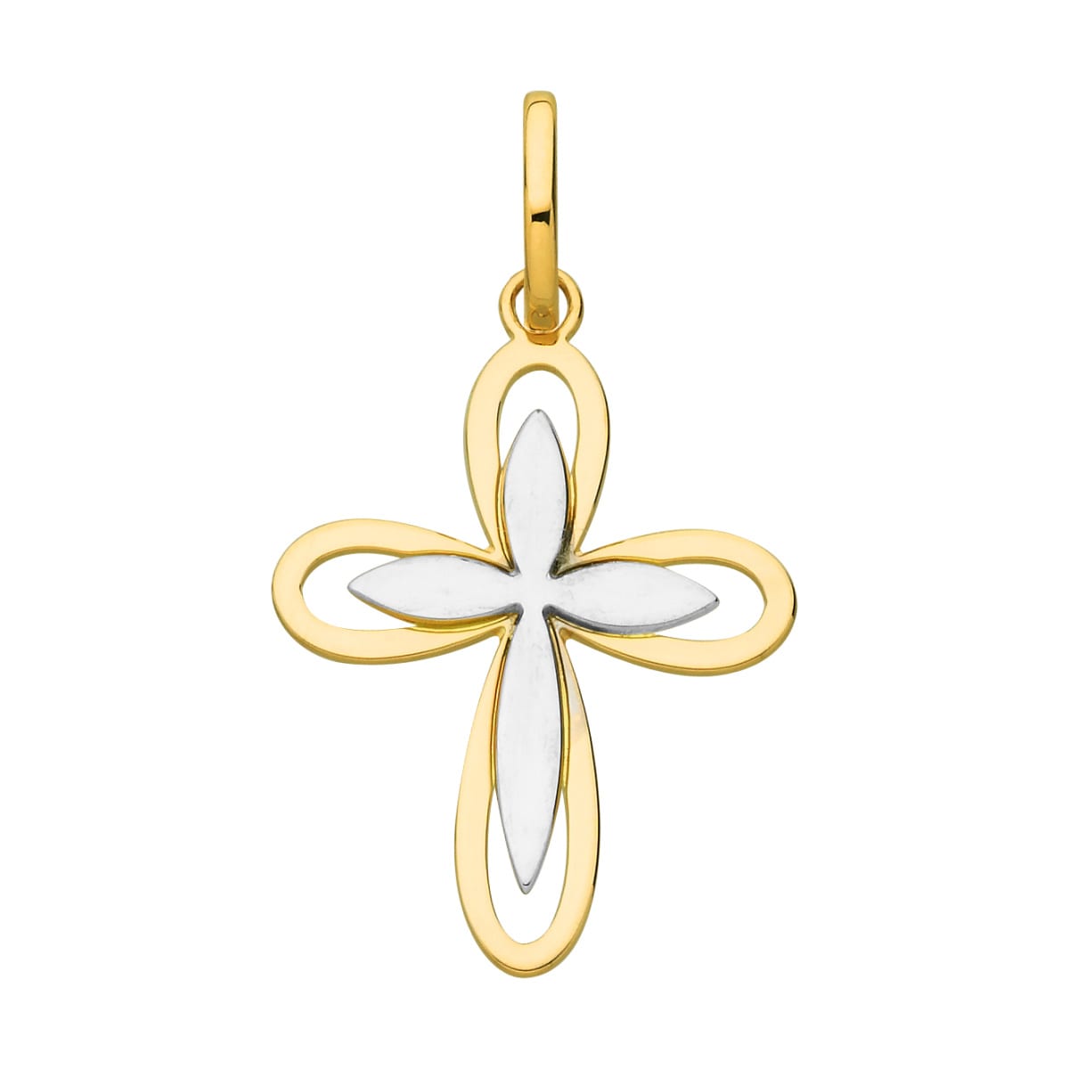 Croix ajourée bicolore, or gris et or jaune