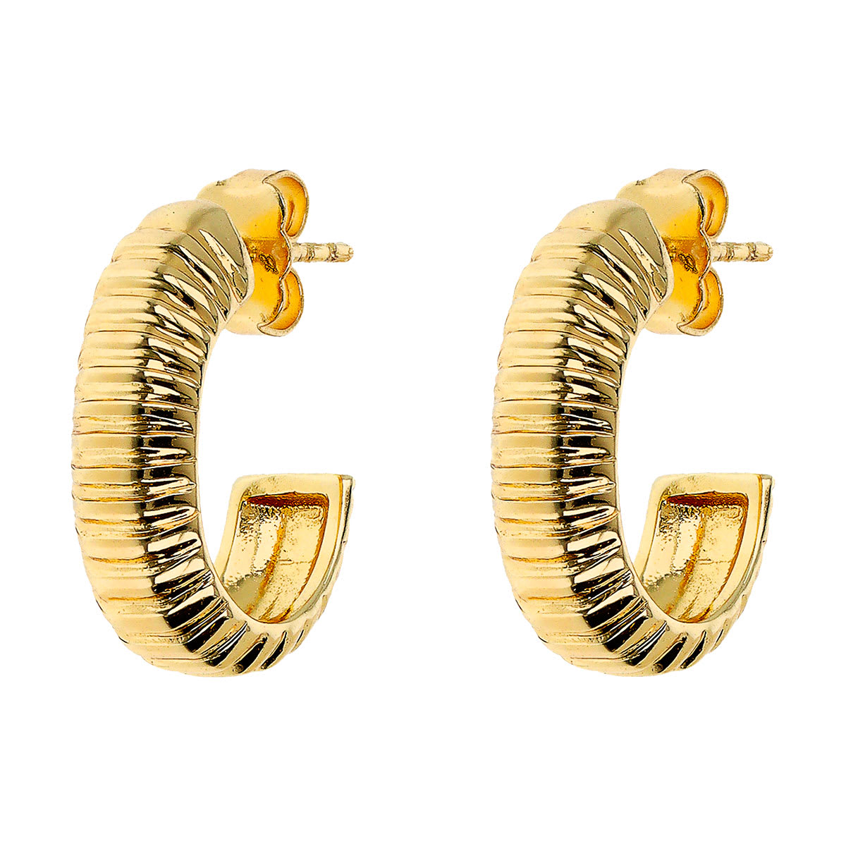 Boucles d'oreilles ovales Etrusca Gioielli en alliage Golden, doré à l'or jaune fin 18ct, de forme ovale (20x15 mm) à texture rayée. Fermeture épingle et papillon.