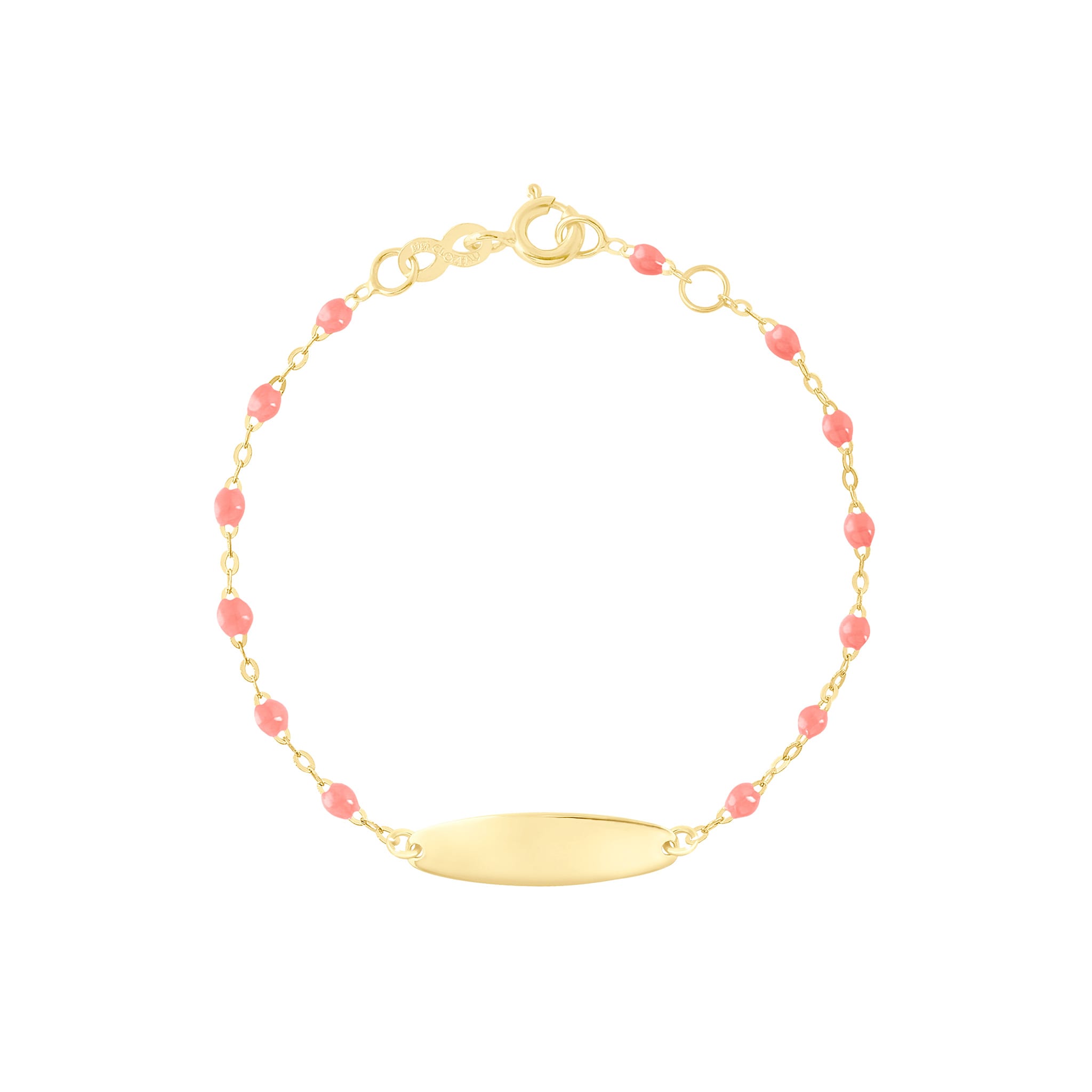 Gourmette enfant en or jaune, résine fuchsia, 15 cm